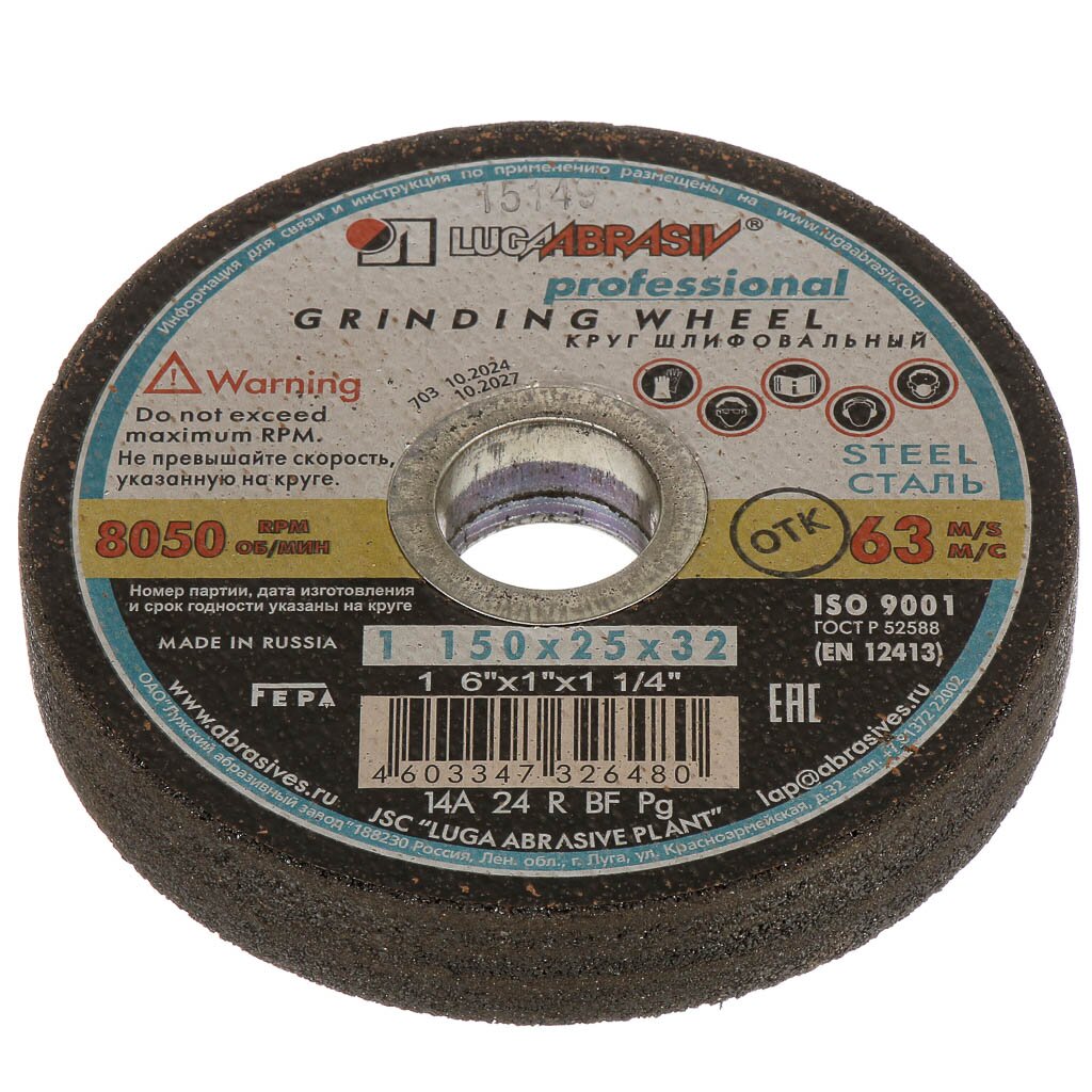 Диск шлифовально-точильный LugaAbrasiv 14А BF, 150х25х32 ммОписание