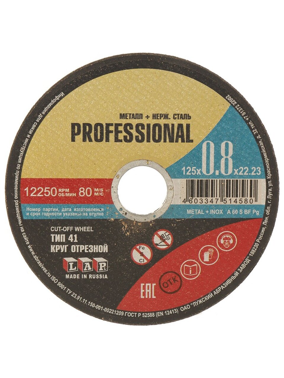 Вы можете приобрести «Круг отрезной по металлу, LugaAbrasiv, Professional, BF, диаметр 125х0.8 мм, посадочный диаметр 22.23 мм, зернистость A60, S 80 м/с» и другие товары в нашем интернет-магазине в Краснодаре по низким ценам и с бесплатным самовывозом.