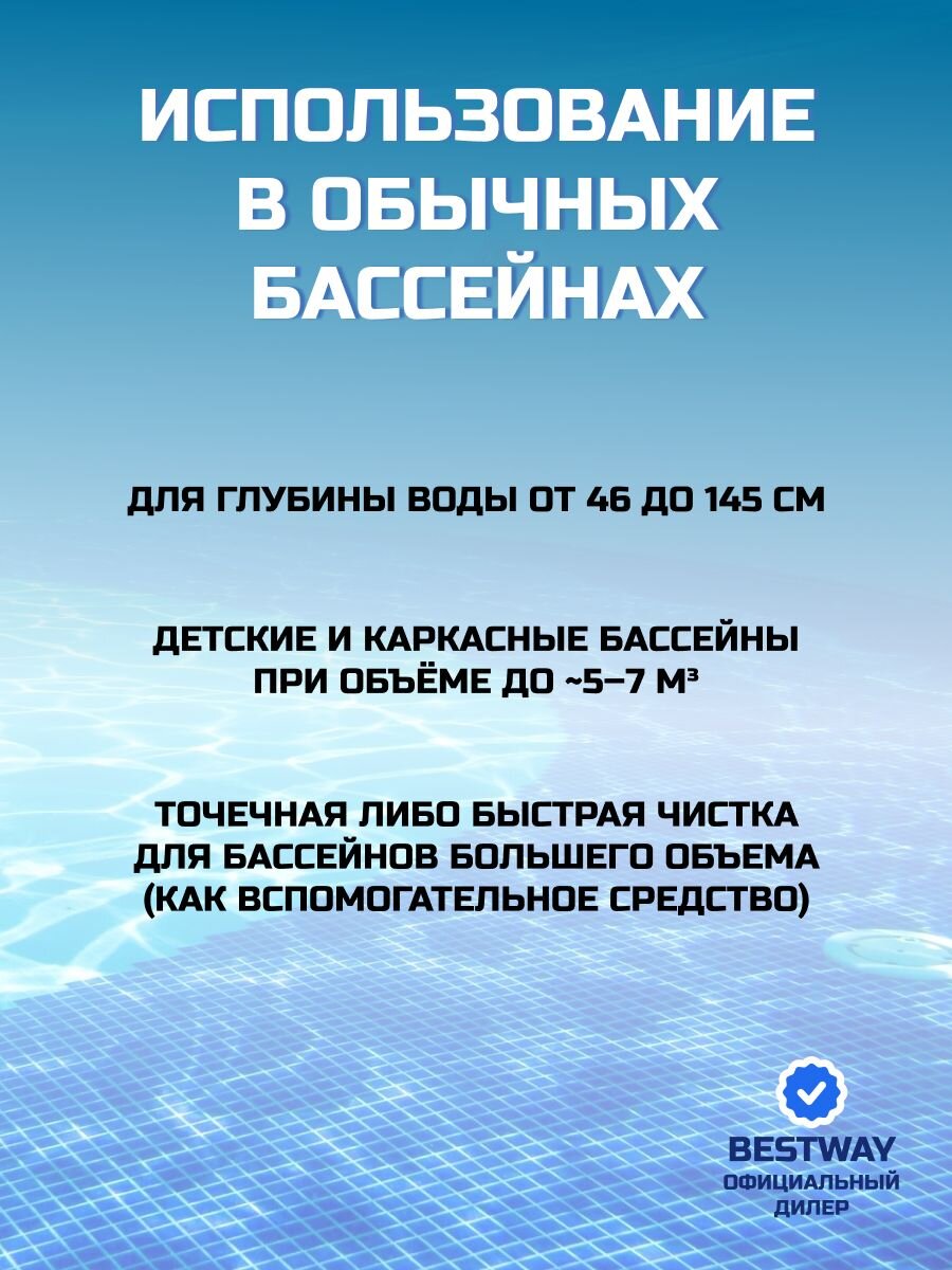 Пылесос подходит для глубины воды от 46 см до 145 см.
