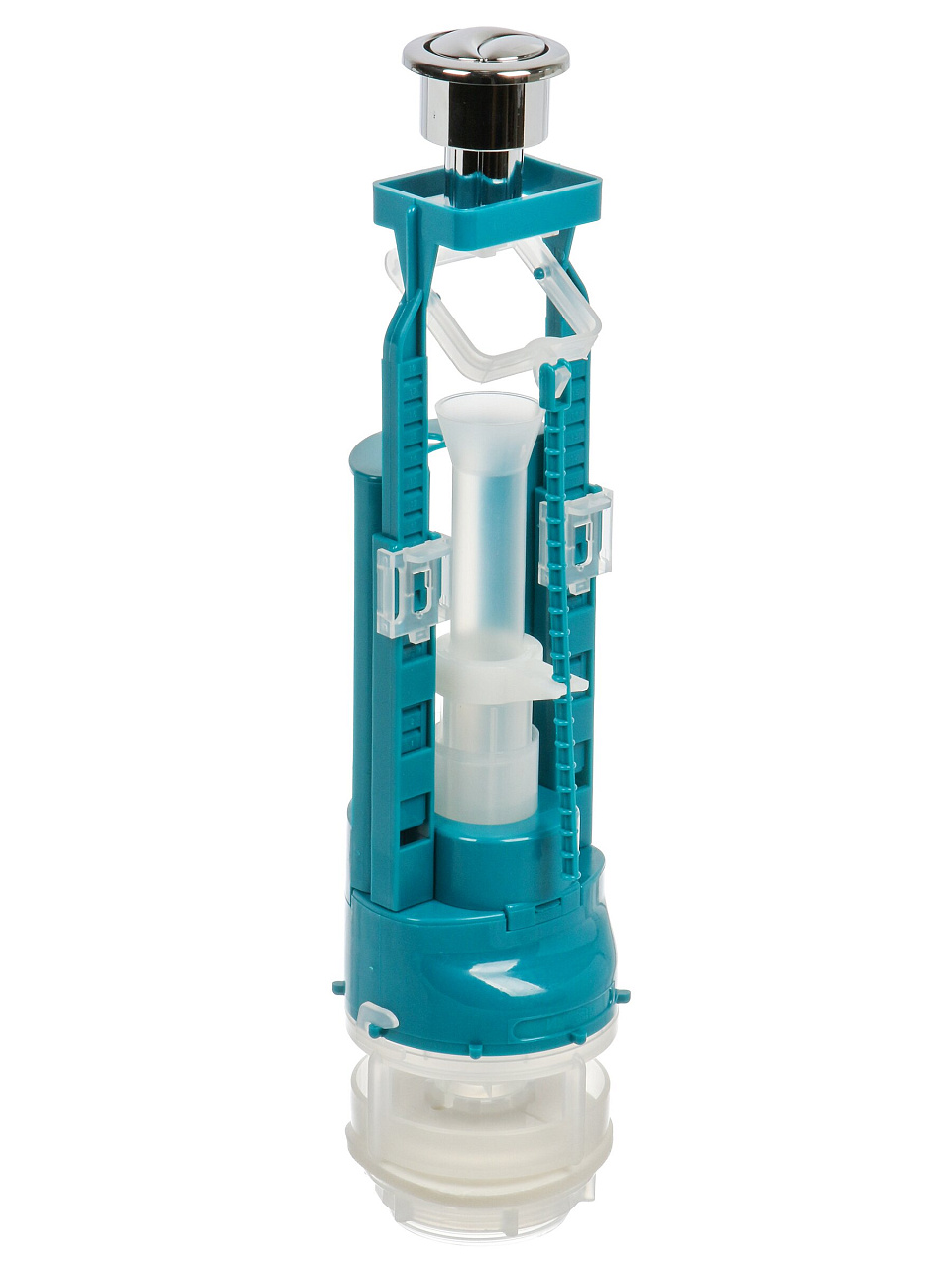 Универсальный сливной клапан СБ2 (3/6л.) кнопочный с двумя режимами слива (для слива всего полезного объема бачка необходимо нажать на большую кнопку смыва, для слива половины объема (зависит от выбранных настроек пользователя) - на малую кнопку).