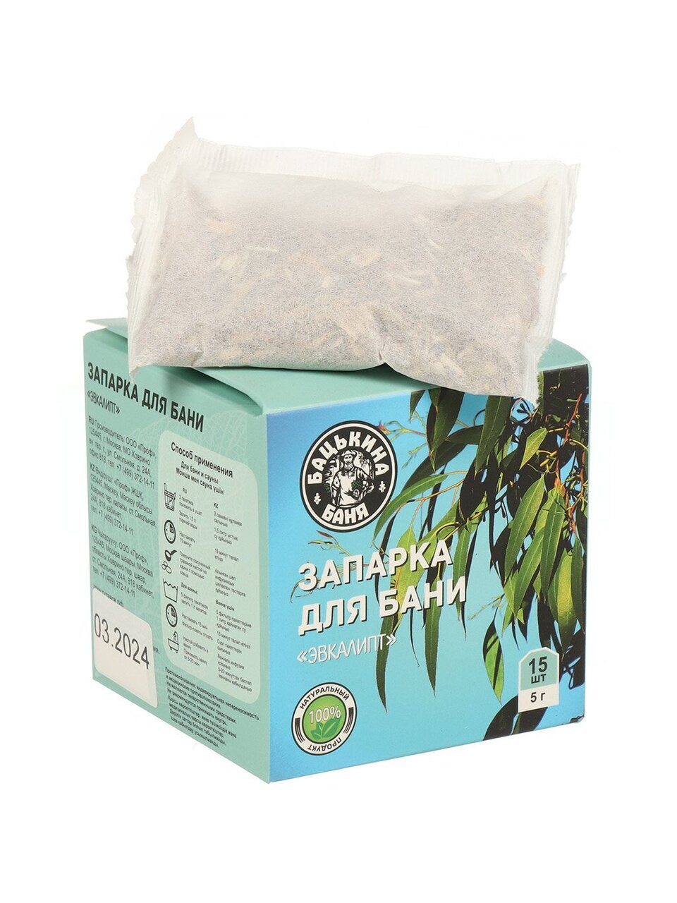 Запарка для бани 5 г, фильтр-пакет, 15 шт, "Бацькина Баня", модель "Эвкалипт" (артикул 21035) станет вашим верным спутником в создании идеальной атмосферы для отдыха и восстановления сил. Страна продавца - Россия, что гарантирует соответствие всем необходимым стандартам качества. Вес одного фильтр-пакета составляет 5 г, что делает его удобным для хранения и использования.