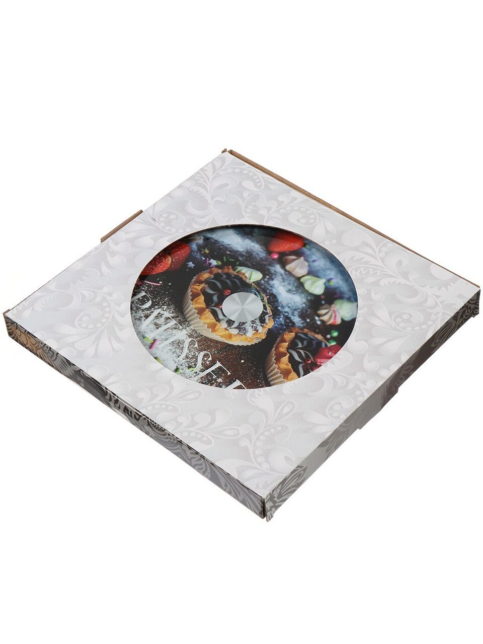 Вращающееся стеклянное блюдо Daniks «Пирожные», 30 см — эффектная сервировка и удобство подачи тортов и закусок для дома и праздника.