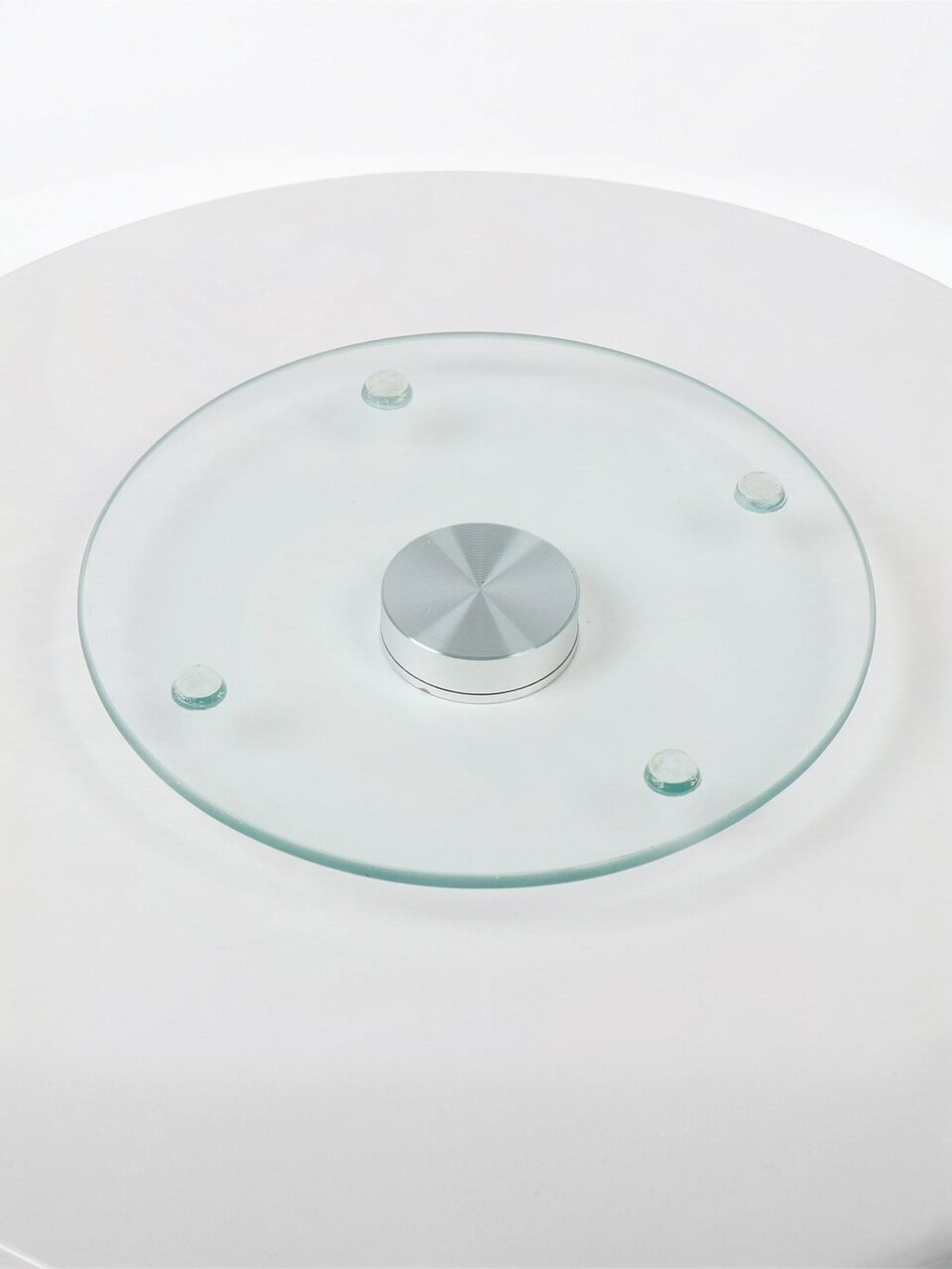 Вращающийся механизм облегчает доступ к угощениям, делает сервировку динамичной, а стекло с рисунком устойчиво к царапинам и легко моется, сохраняя яркость декора.