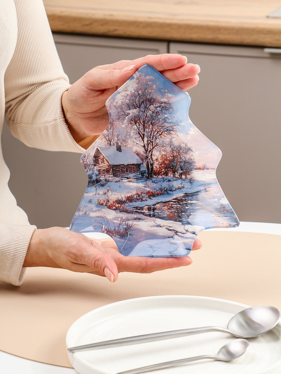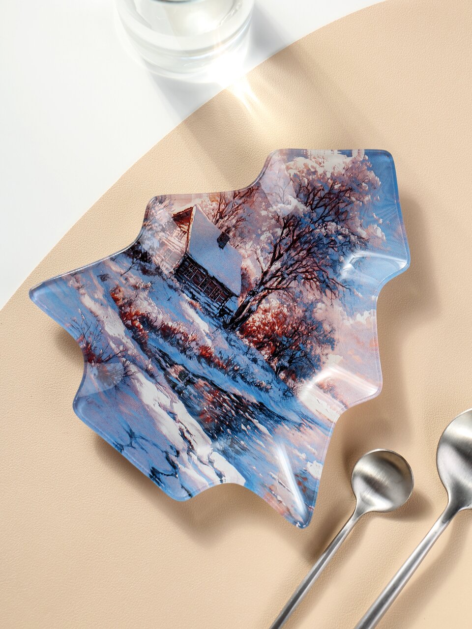 - Уникальный дизайн: блюдо в форме ёлки с зимним рисунком добавит уюта и праздничного настроения.