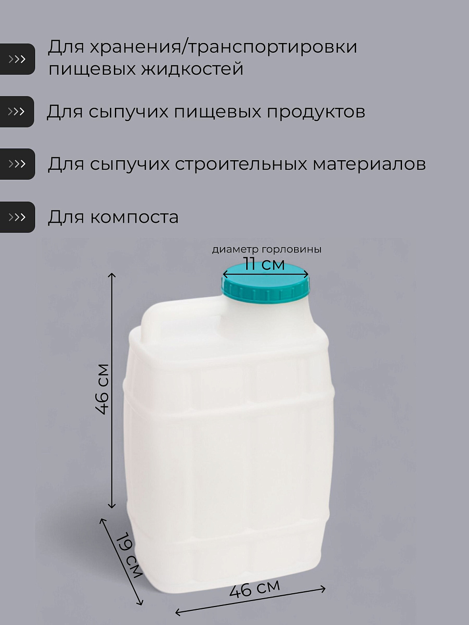 - Идеальна для воды на даче, в походе, для хранения технических жидкостей или как запас в доме.