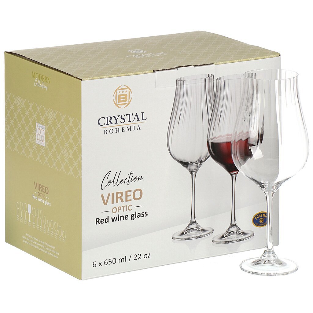 Бокалы для вина Bohemia Vireo optic 650 мл — набор из 6 стильных рельефных бокалов из выдувного стекла: идеальный подарок и решение для сервировки праздничного стола.