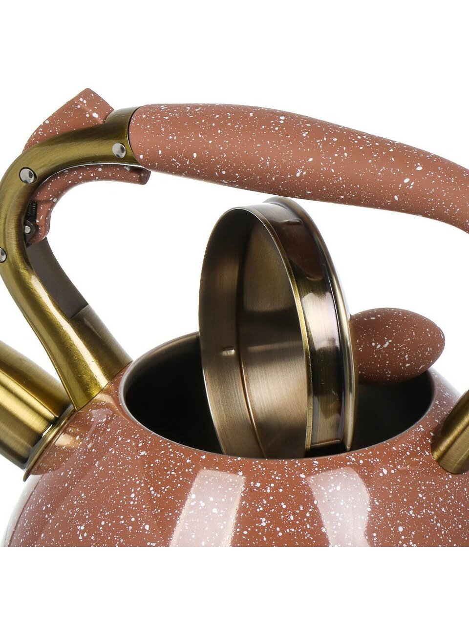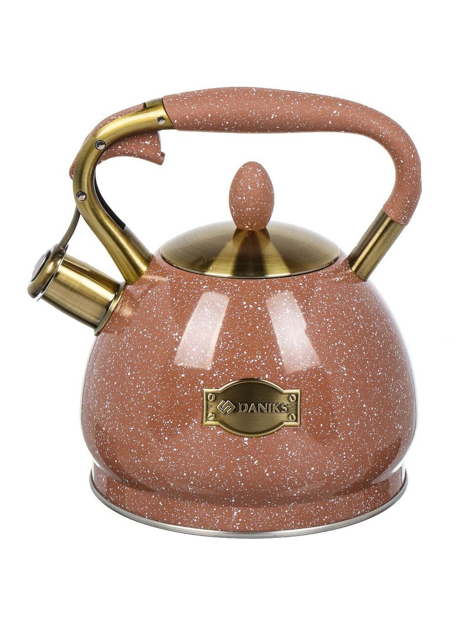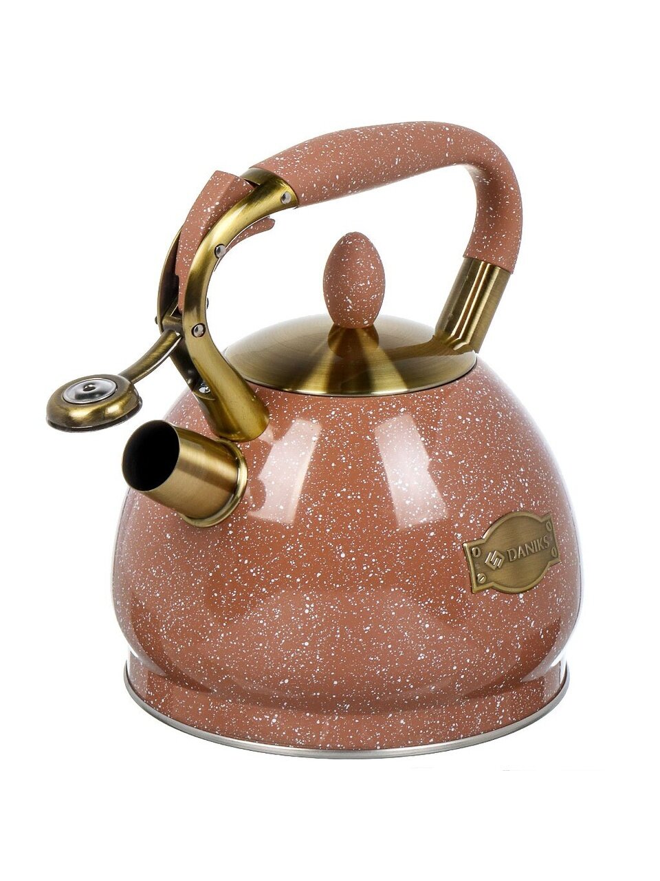 Вы можете приобрести «Чайник нержавеющая сталь, 3 л, со свистком, матовый, ручка с покрытием, нейлон, Daniks, индукция, коричневый, GS-04517H-2» и другие товары в нашем интернет-магазине в Курске по низким ценам и с бесплатным самовывозом.