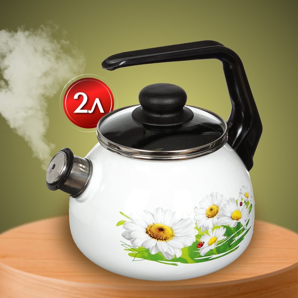 Вы можете приобрести «Чайник сталь, эмалированное покрытие, 2 л, со свистком, ручка консольная, СтальЭмаль, Ромашки лето, индукция, 4с210я» и другие товары в нашем интернет-магазине в Орле по низким ценам и с бесплатным самовывозом.
