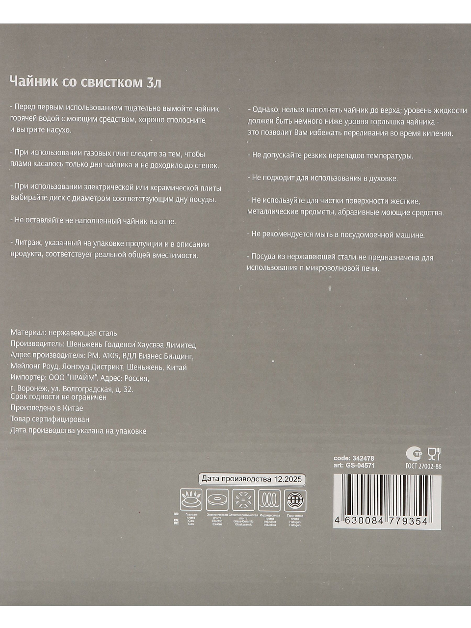 - Надёжность и вместимость: прочный корпус из нержавеющей стали, объём 3 литра, гарантия 12 месяцев.