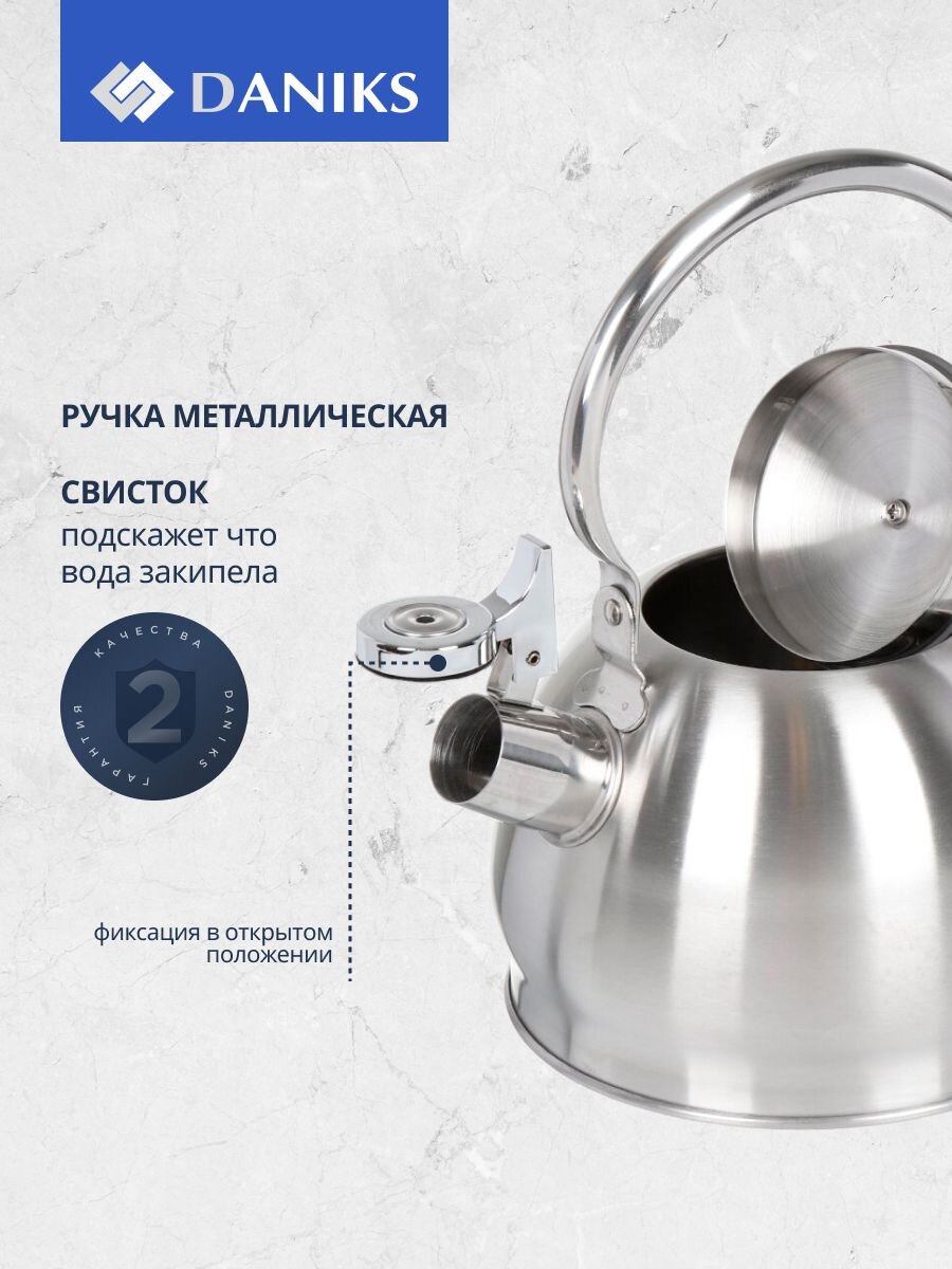 Чайник Daniks из нержавеющей стали, 2 л: универсальный выбор для любых плит, долговечный, со свистком, по выгодной цене — идеален для дома и дачи.
