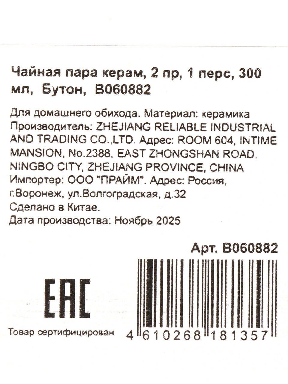 Вы можете приобрести «Чайная пара керамика, 2 предмета, на 1 персону, 300 мл, Бутон, B060882» и другие товары в нашем интернет-магазине в Старом Осколе по низким ценам и с бесплатным самовывозом.