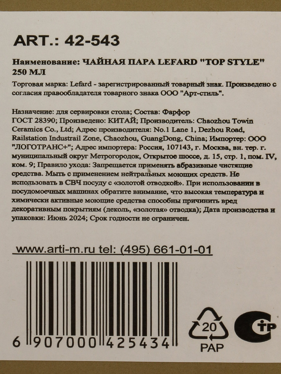 Вы можете приобрести «Чайная пара фарфор, 2 предмета, на 1 персону, 250 мл, Lefard, Top style, 42-543» и другие товары в нашем интернет-магазине в Смоленске по низким ценам и с бесплатным самовывозом.