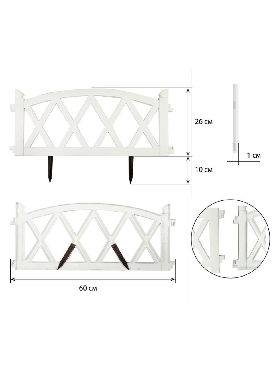 Преобразите ваш сад с помощью декоративного забора от бренда "Мастер сад". Этот элегантный и функциональный заборчик станет идеальным решением для создания стильного и аккуратного ландшафтного дизайна. Изготовленный из прочного пластика, он обеспечивает долговечность и устойчивость к внешним условиям. Белый цвет добавляет свежести и визуальной чистоты вашему пространству.