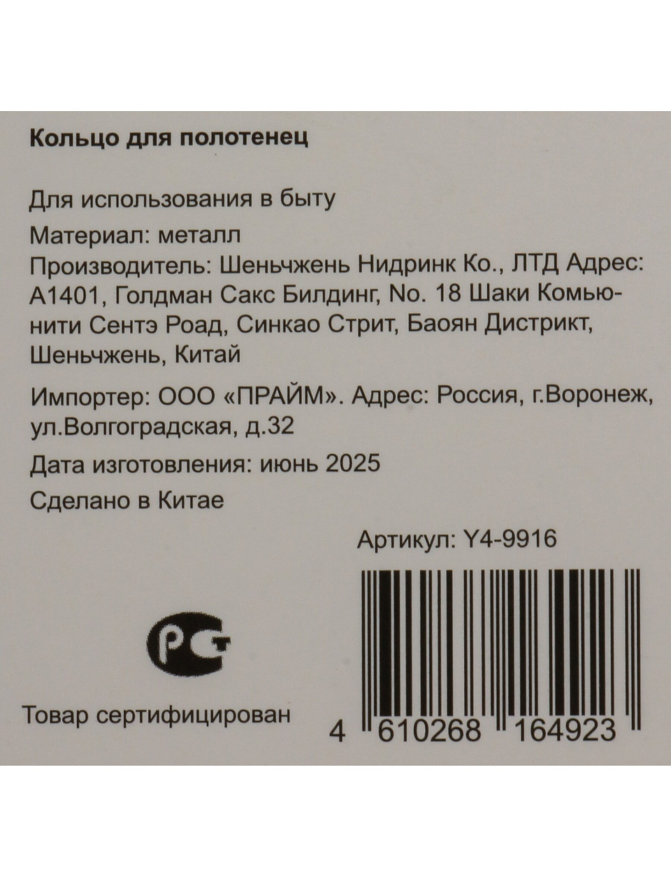 Держатель для полотенец, с кольцом, нерж стальY4-9916