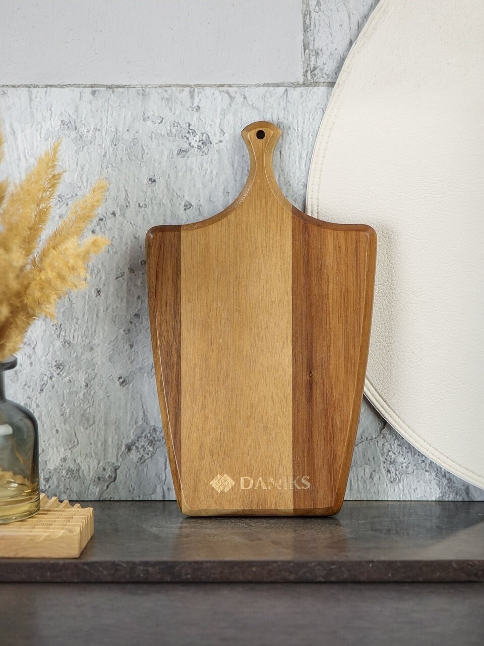 Покупка этой разделочной доски из акации принесет выгоду в виде долговечности и эстетического удовольствия от использования качественного кухонного аксессуара. Она станет надежным помощником в приготовлении блюд и подчеркнет ваш вкус к деталям. Превратите процесс готовки в настоящее удовольствие, наслаждаясь красотой и функциональностью этого изделия. Не упустите возможность улучшить кухонное пространство с этой стильной и практичной доской!