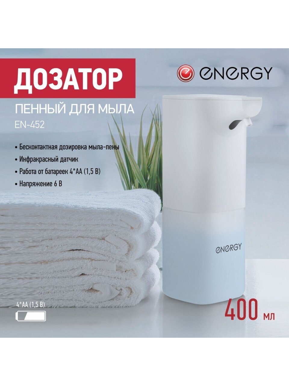 Автоматический пенный дозатор для мыла Energy EN-452: гигиена без прикосновений, экономия до 50% расхода, подходит для дома и офиса — 400 мл объёма.