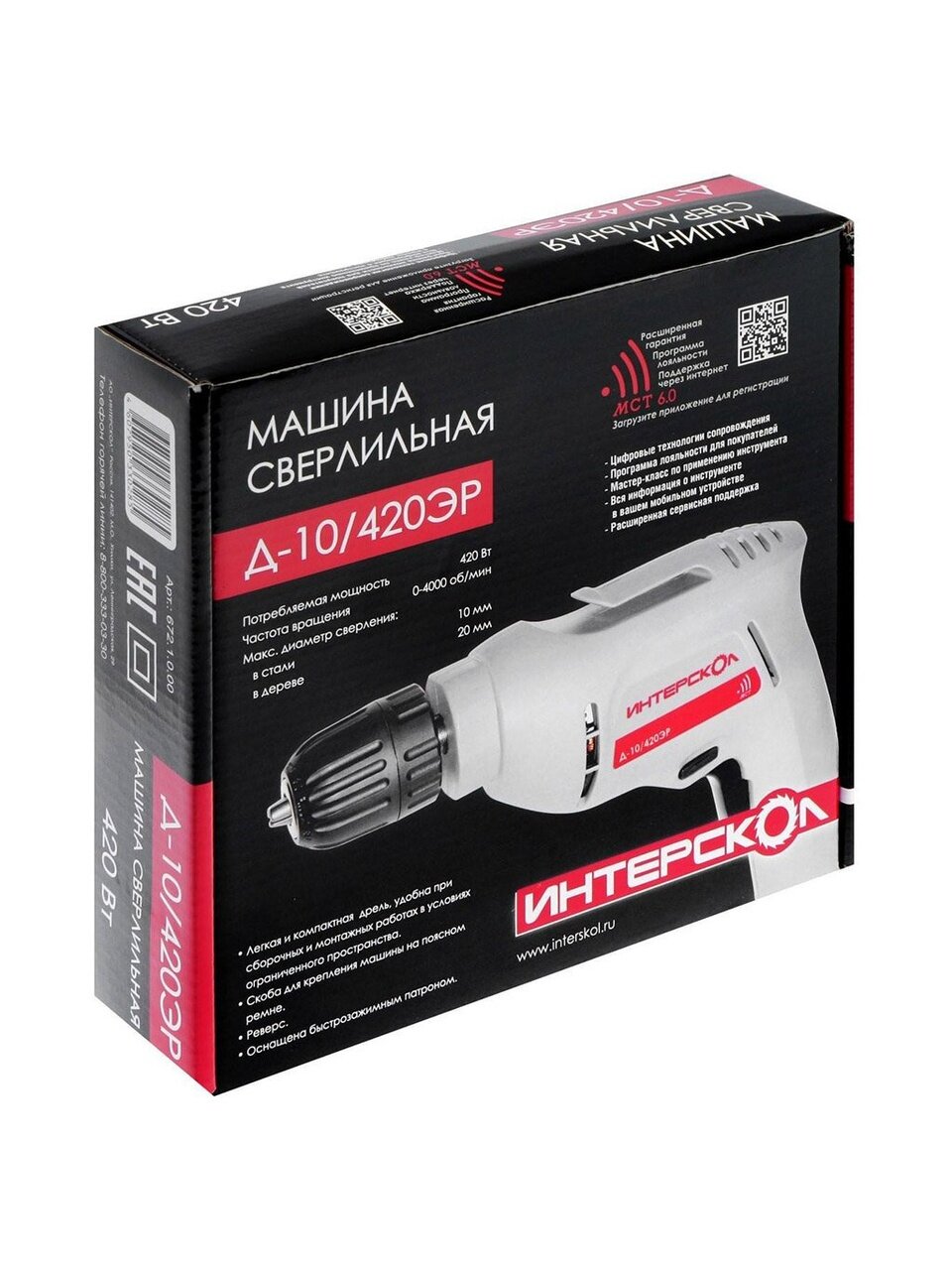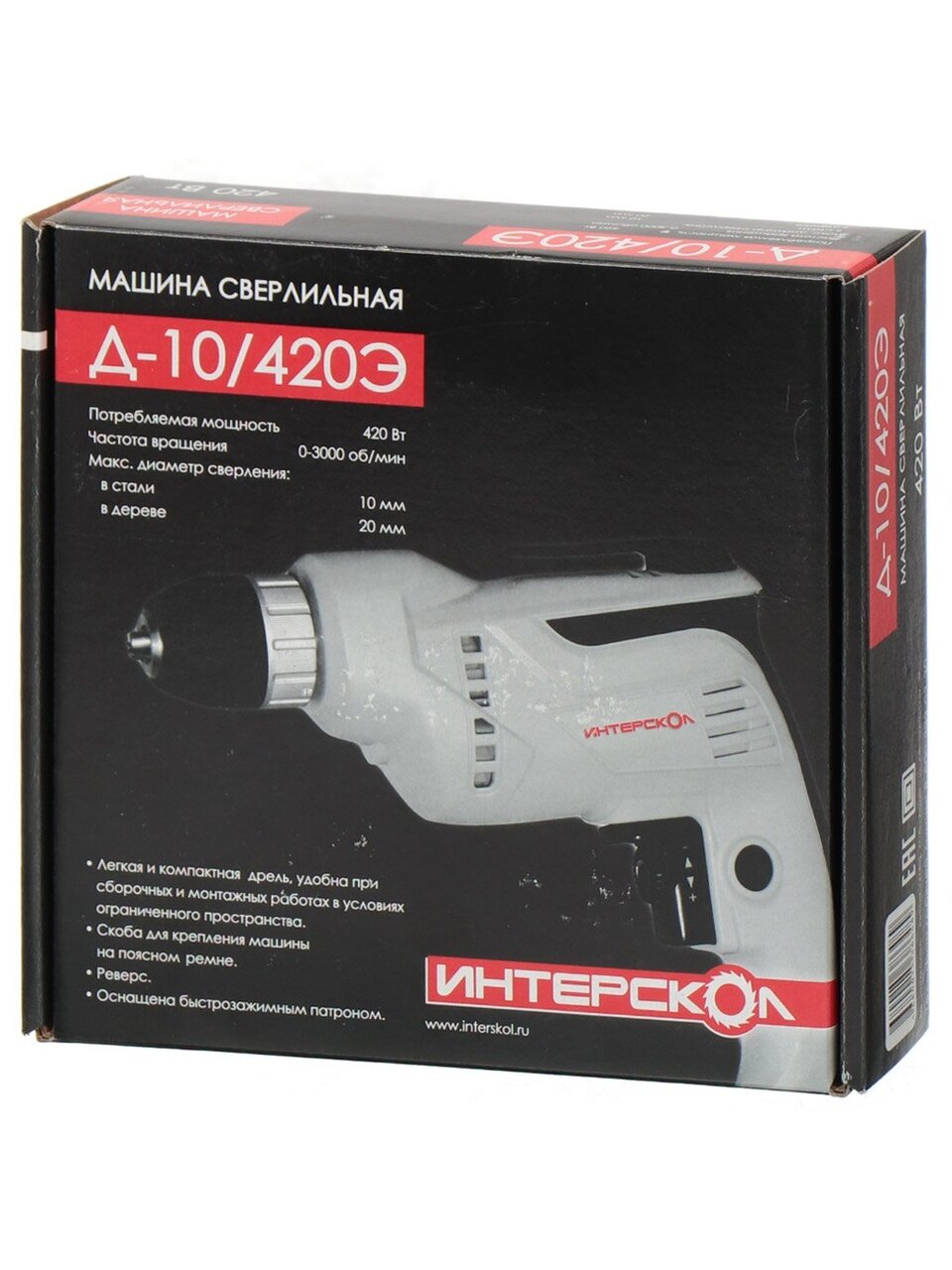 Вы можете приобрести «Дрель Интерскол, Д-10/420ЭР, быстрозажимной патрон, 10 мм, 420 Вт, с реверсом, 1 скорость, с регулировкой оборотов» и другие товары в нашем интернет-магазине в Железногорске по низким ценам и с бесплатным самовывозом.
