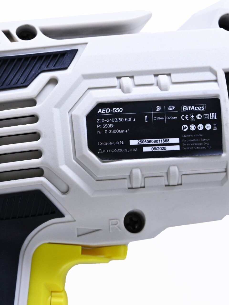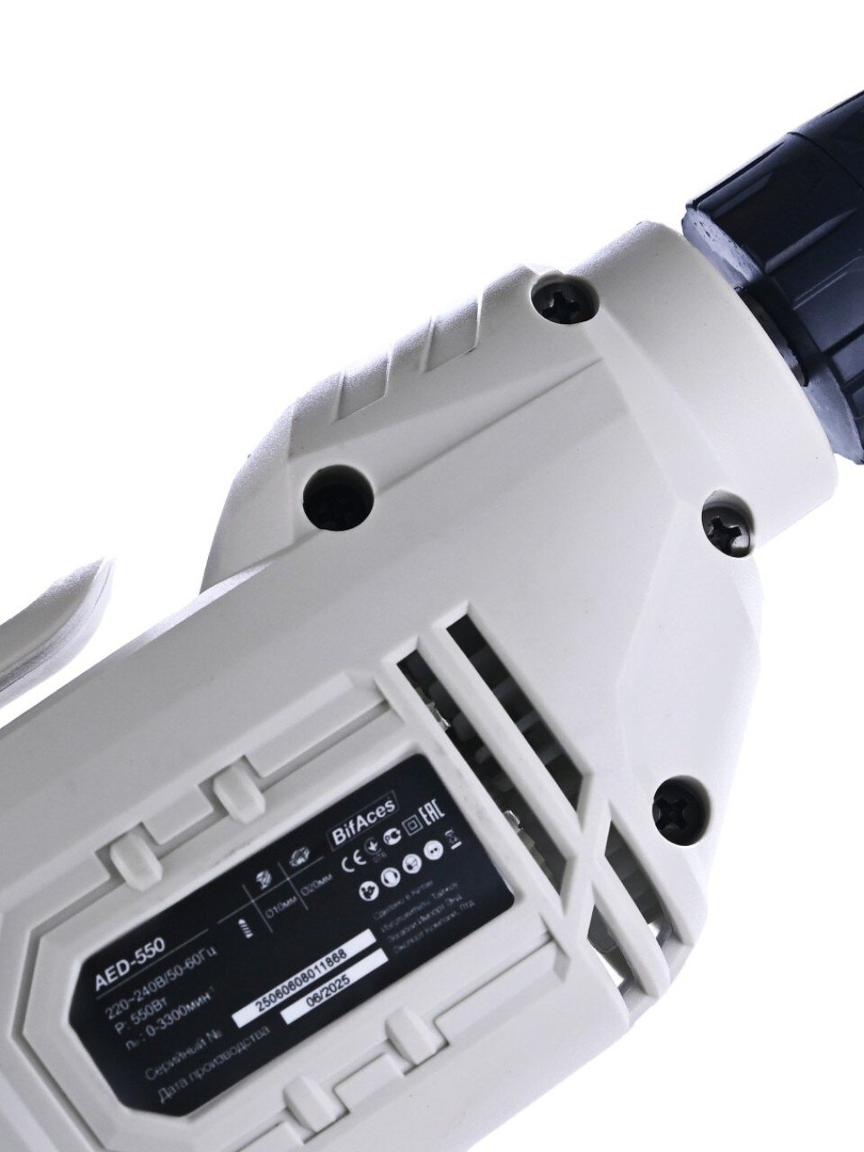 Дрель сетевая BifAces AED-550 — 3300 об/мин и 550 Вт для точного сверления дома и на даче. Надёжная, лёгкая, с защитой от перегрузок — выгодное решение для быта.