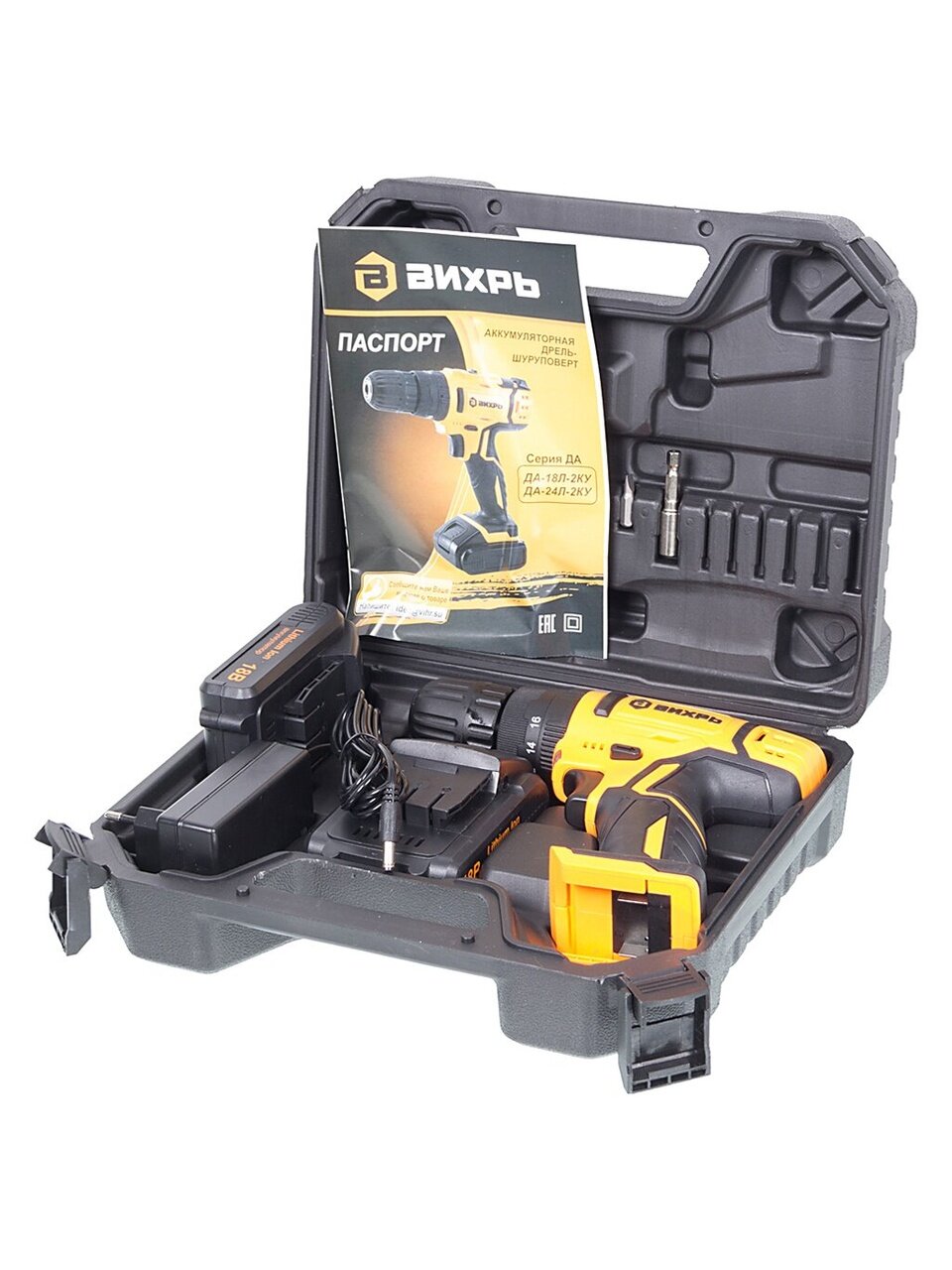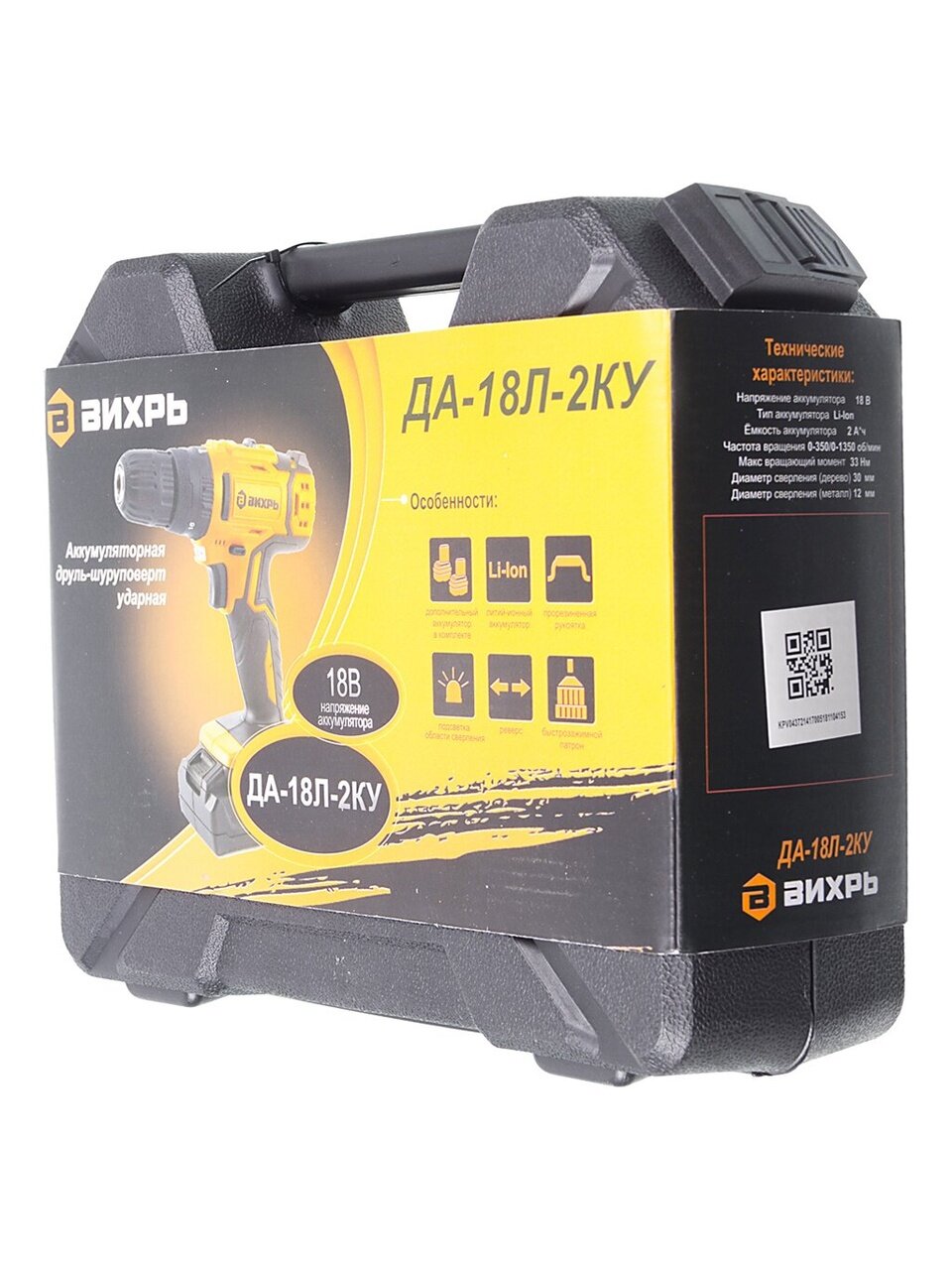 Дрель-шуруповерт ВИХРЬ ДА-18Л-2КУ является усовершенствованной версией модели ДА-18Л-2К с дополнительной функцией долбления со сверлением. Используется для просверливания отверстий в деревянных, пластмассовых и металлических изделиях или для работы в качестве шуруповерта.
