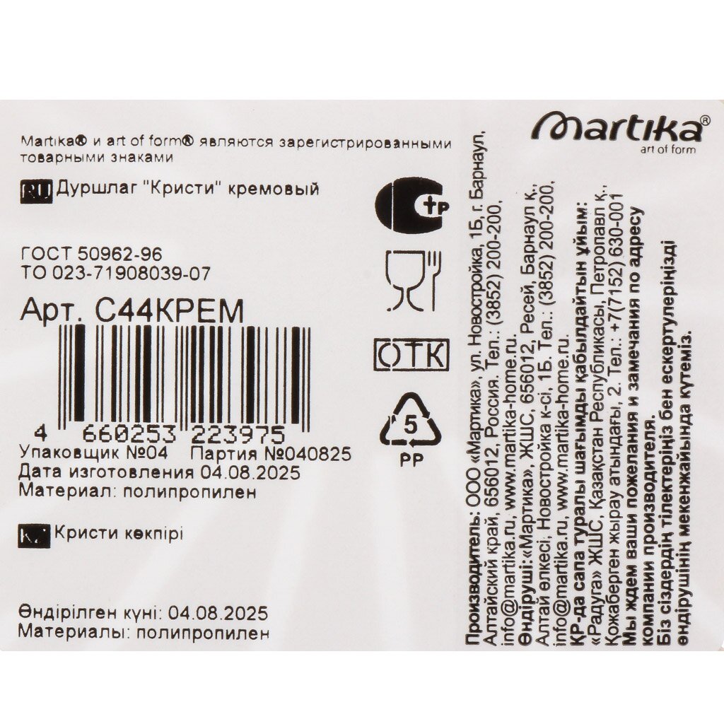 Дуршлаг Martika Кристи 2,8 л: лёгкий, прочный, кремовый — идеальный выбор для кухни, дачи и подарка. Удобная ручка, устойчивость, универсальный размер.