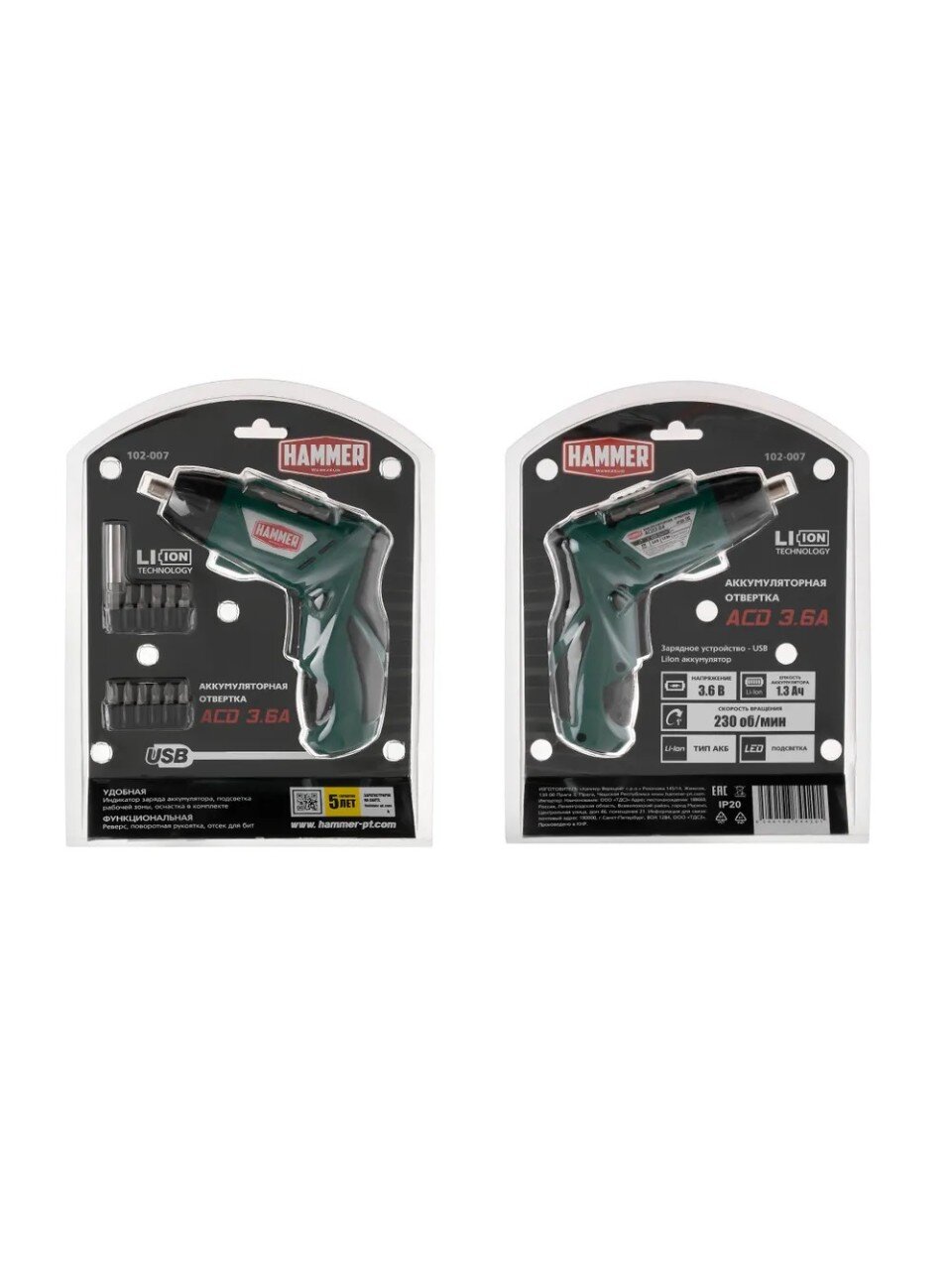 Отвертка аккумуляторная Hammer ACD3.6A: универсальный помощник для дома и дачи — 60 месяцев гарантии, компактность и набор бит в комплекте.