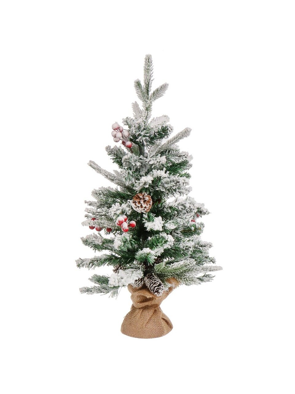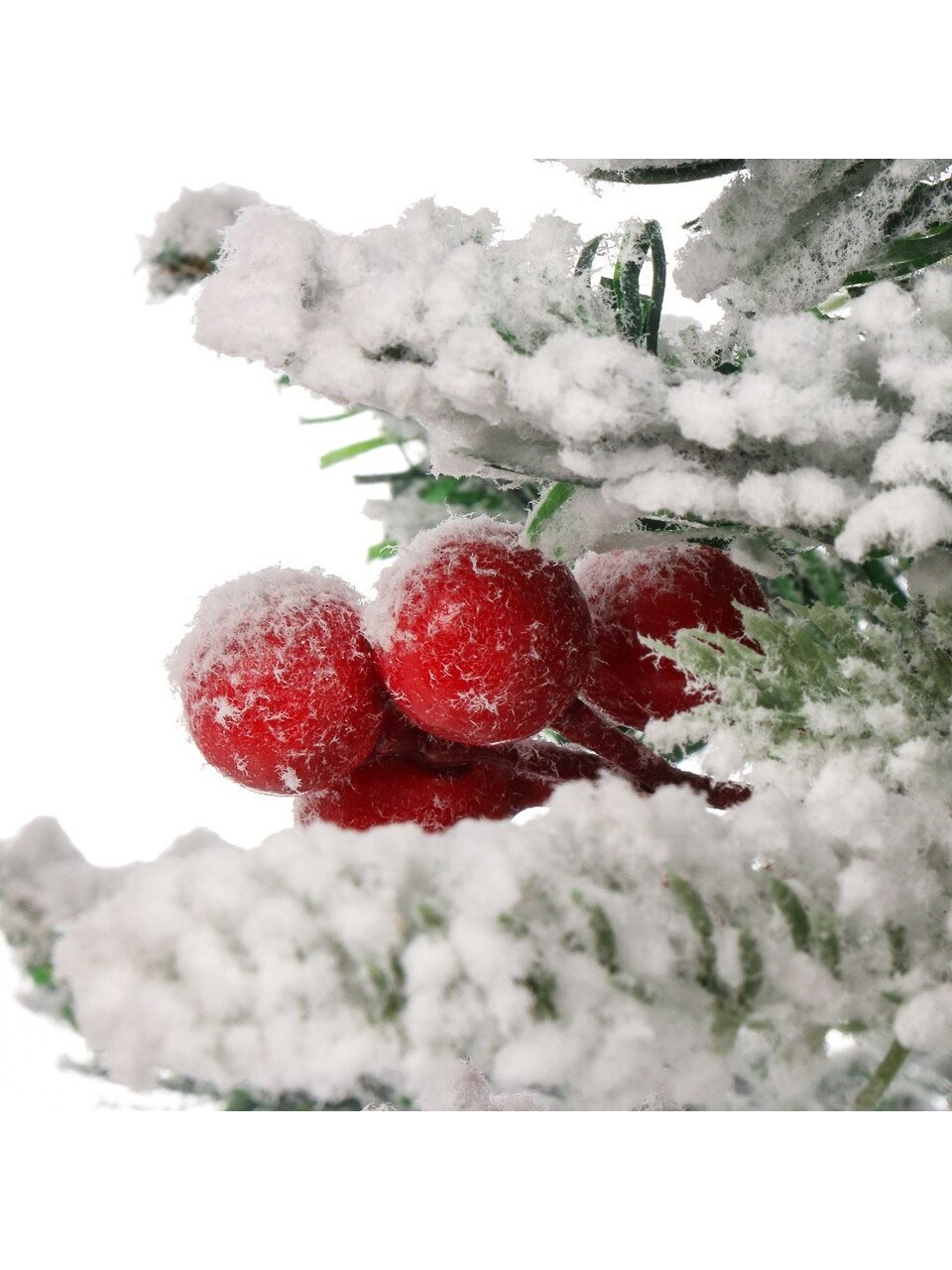 Настольная новогодняя елка 65 см с заснеженными ветками и ягодами — стильный декор для дома или подарка, который не осыпается и не требует ухода.