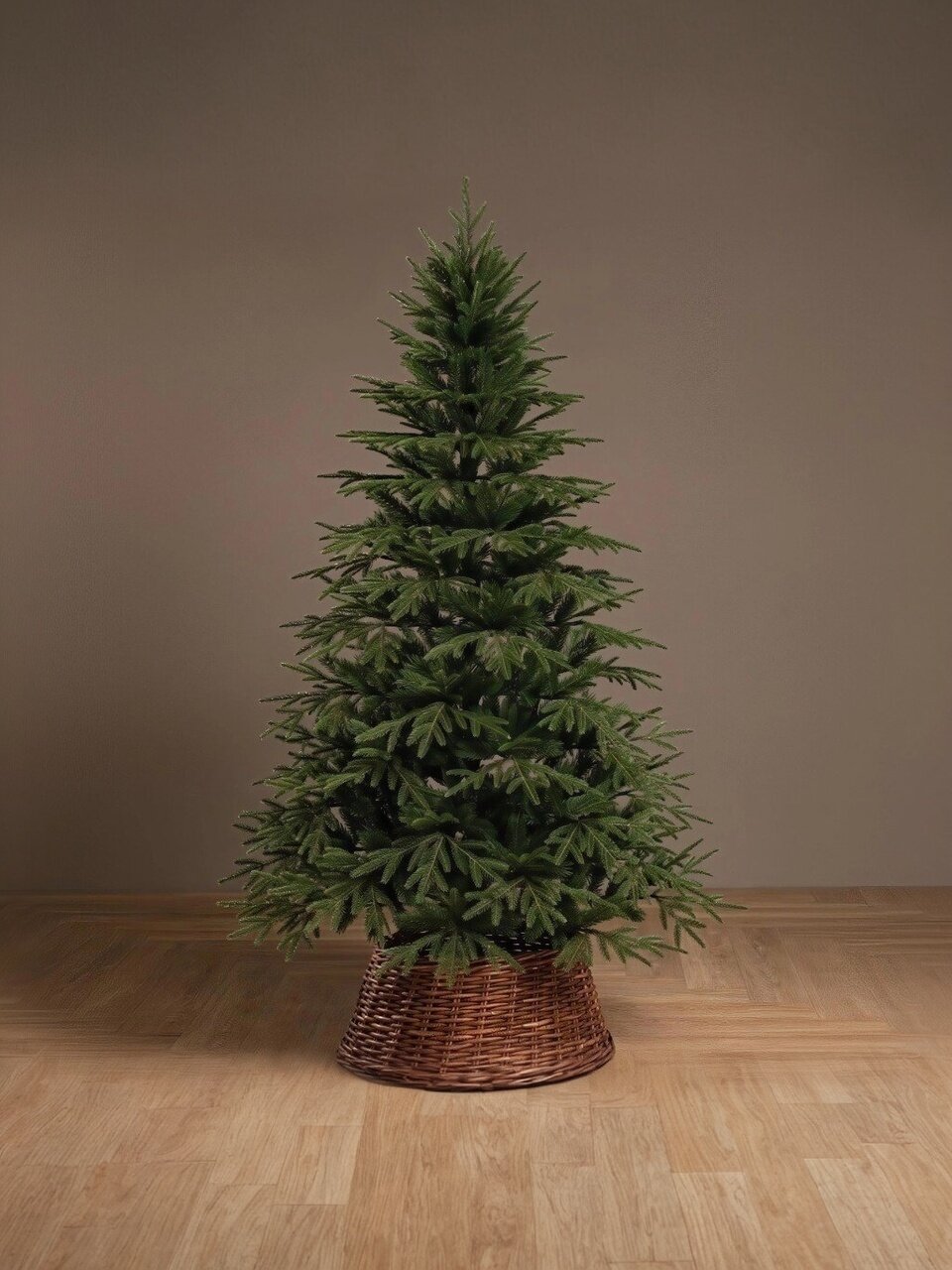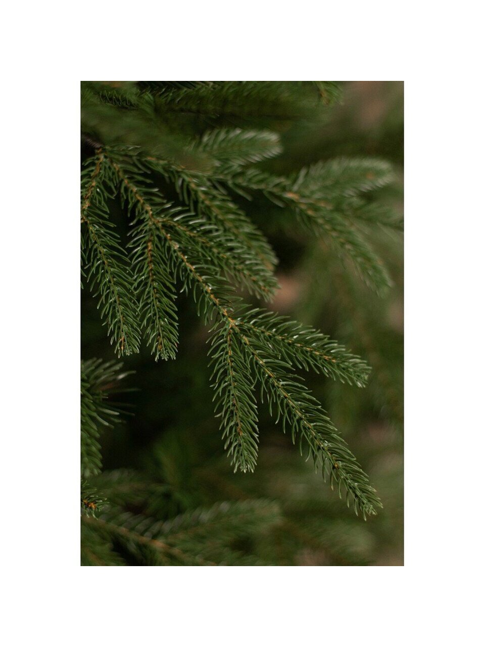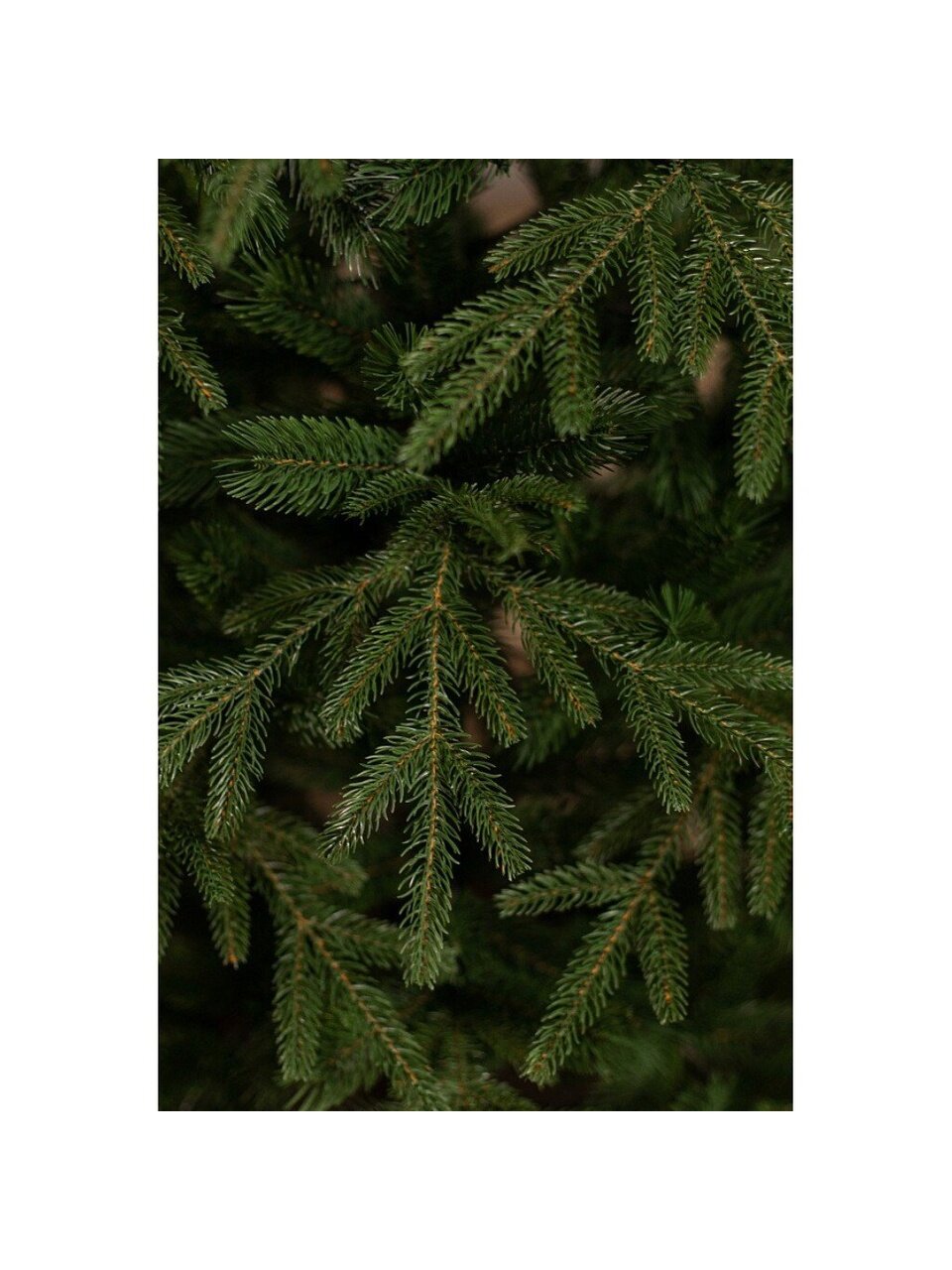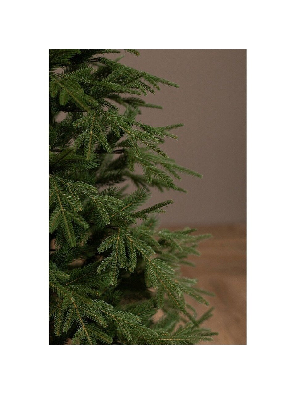 Хвоя изготовлена из литого полимера, имитирующего натуральную ель. Подставка выполнена из прочного пластика — обеспечивает устойчивость и долгий срок службы.