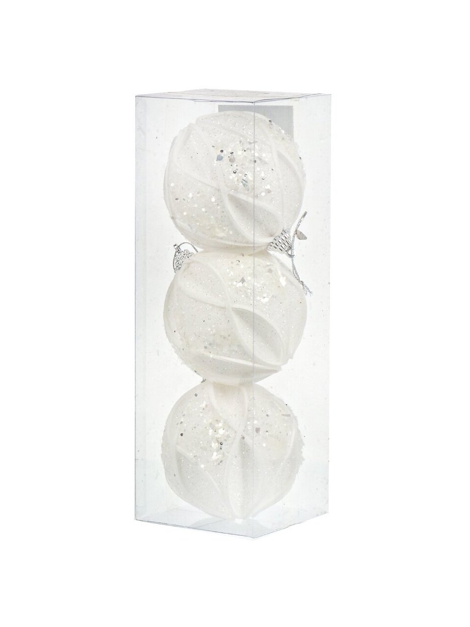 Стильные белые елочные шары 8 см (3 шт) — современное решение для уличной и домашней елки. Безопасны, не бьются, подходят для подарка и декора!