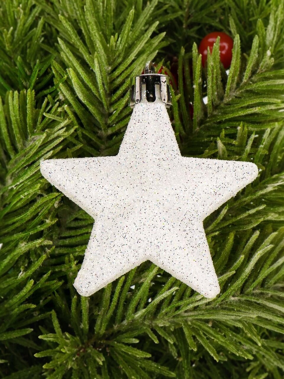Набор елочных украшений «Звездочка» (6 шт, белый, 8 см): стильный декор для дома и улицы, который не разобьется и подчеркнет атмосферу праздника.