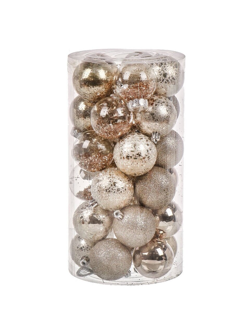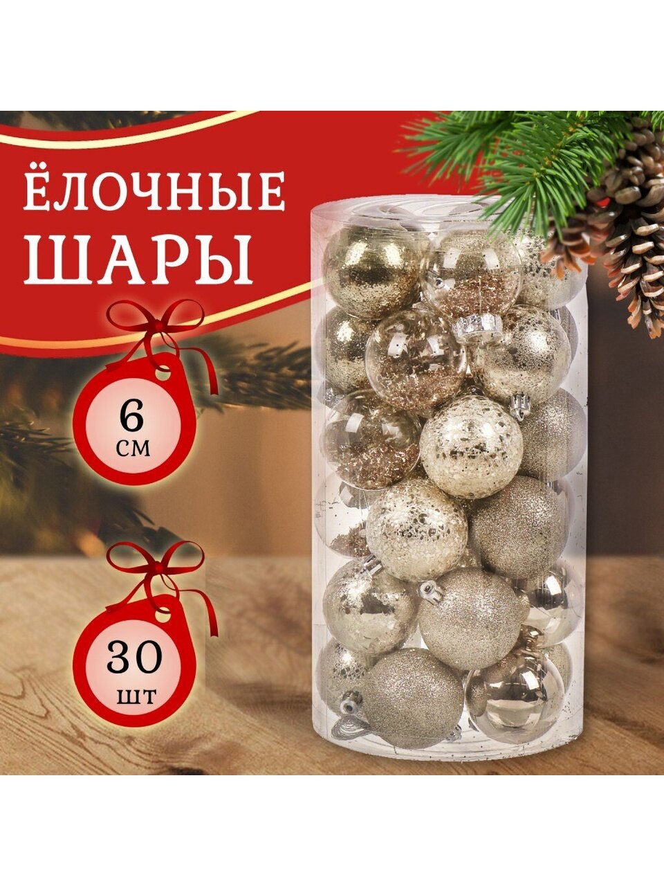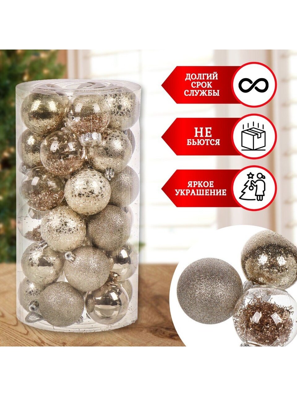 Набор елочных украшений 30 шт, микс, 6 см — универсальное решение для стильного декора дома и дачи, не бьются, подходят для подарка