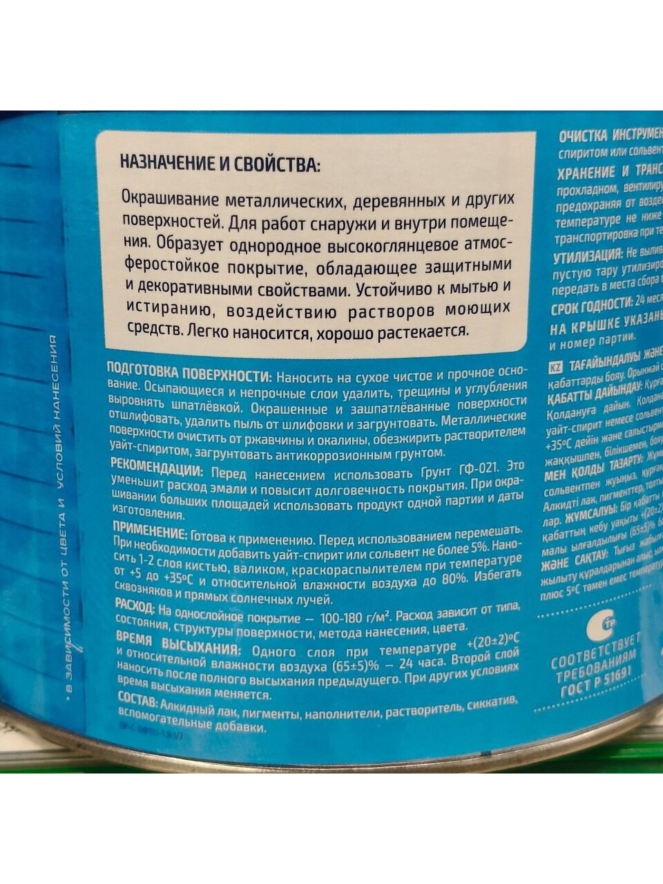 - Состав: Алкидный лак, пигменты, наполнители, добавки.