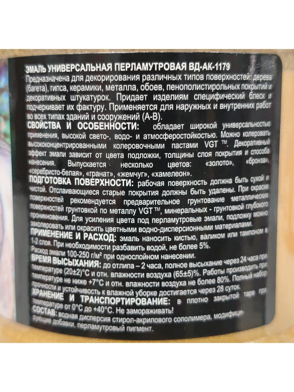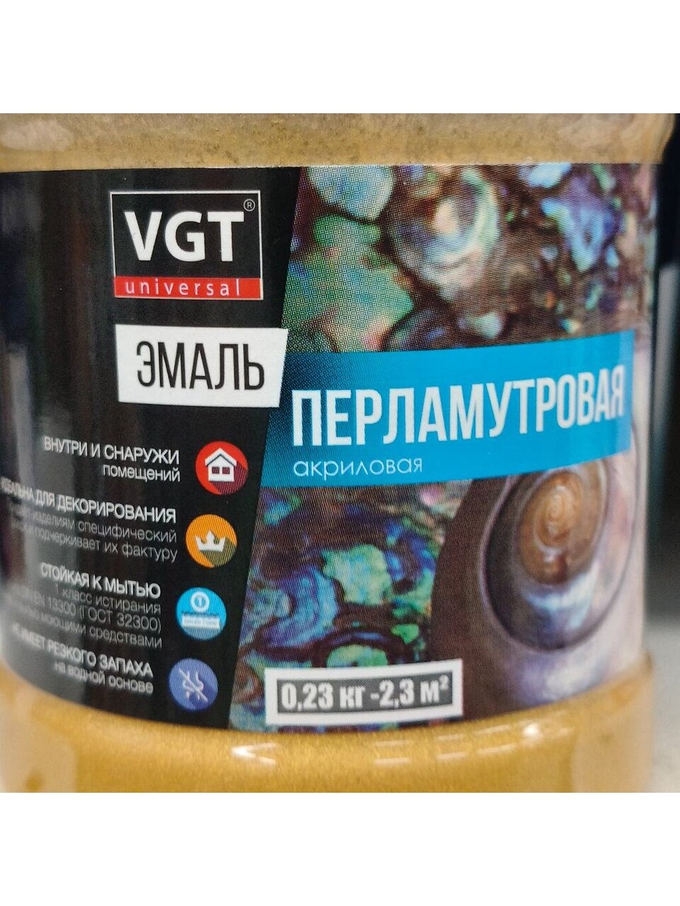 Вы можете приобрести «Эмаль VGT, ВД-АК-1179, универсальная, акриловая, перламутровая, золото, 0.23 кг» и другие товары в нашем интернет-магазине в Курске по низким ценам и с бесплатным самовывозом.