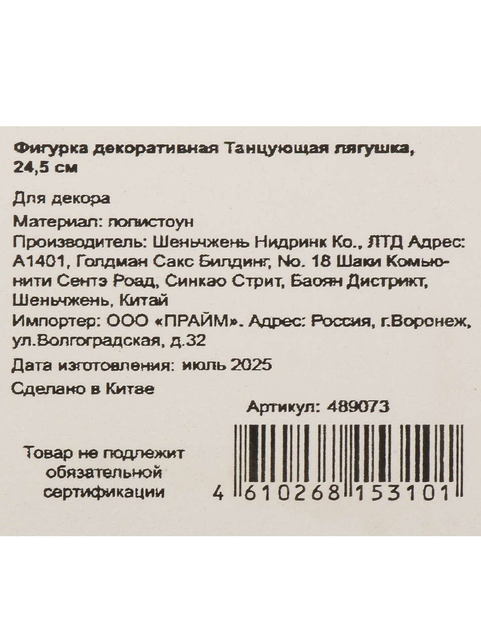 Представляем вашему вниманию декоративную фигурку "Танцующая лягушка" высотой 24.5 см, выполненную из полистоуна. Этот уникальный аксессуар станет настоящим украшением любого интерьера и добавит в него нотку веселья и оригинальности. Изготовленная из качественного синтетического материала, фигурка обладает высокой прочностью и долговечностью, что делает её отличным выбором для декора как дома, так и на даче.