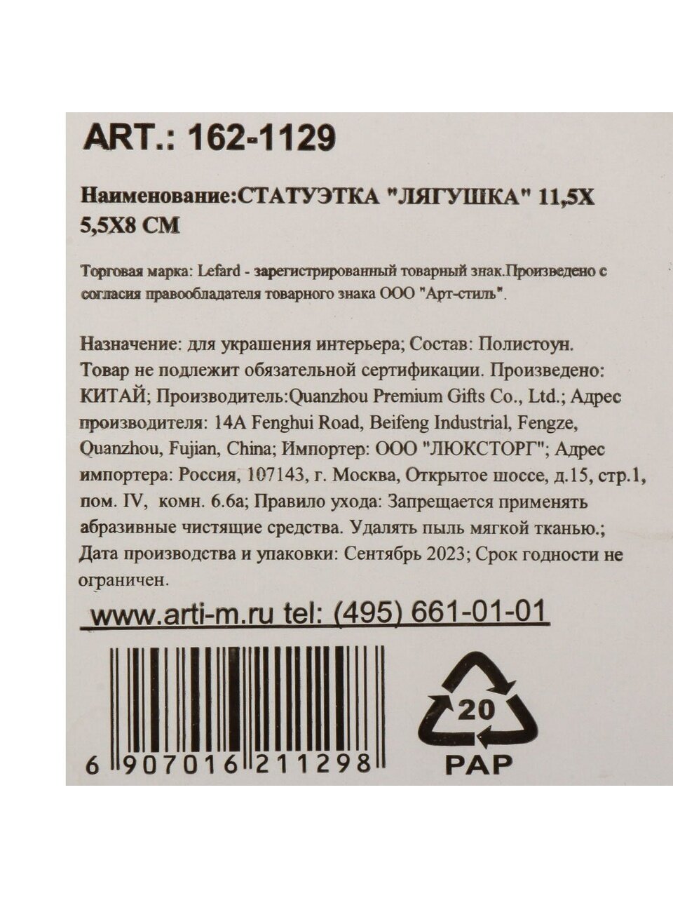 Вы можете приобрести «Статуэтка полистоун, Лягушка, 8х5.5х11.5 см, Lefard, 162-1129» и другие товары в нашем интернет-магазине в Клинцах по низким ценам и с бесплатным самовывозом.