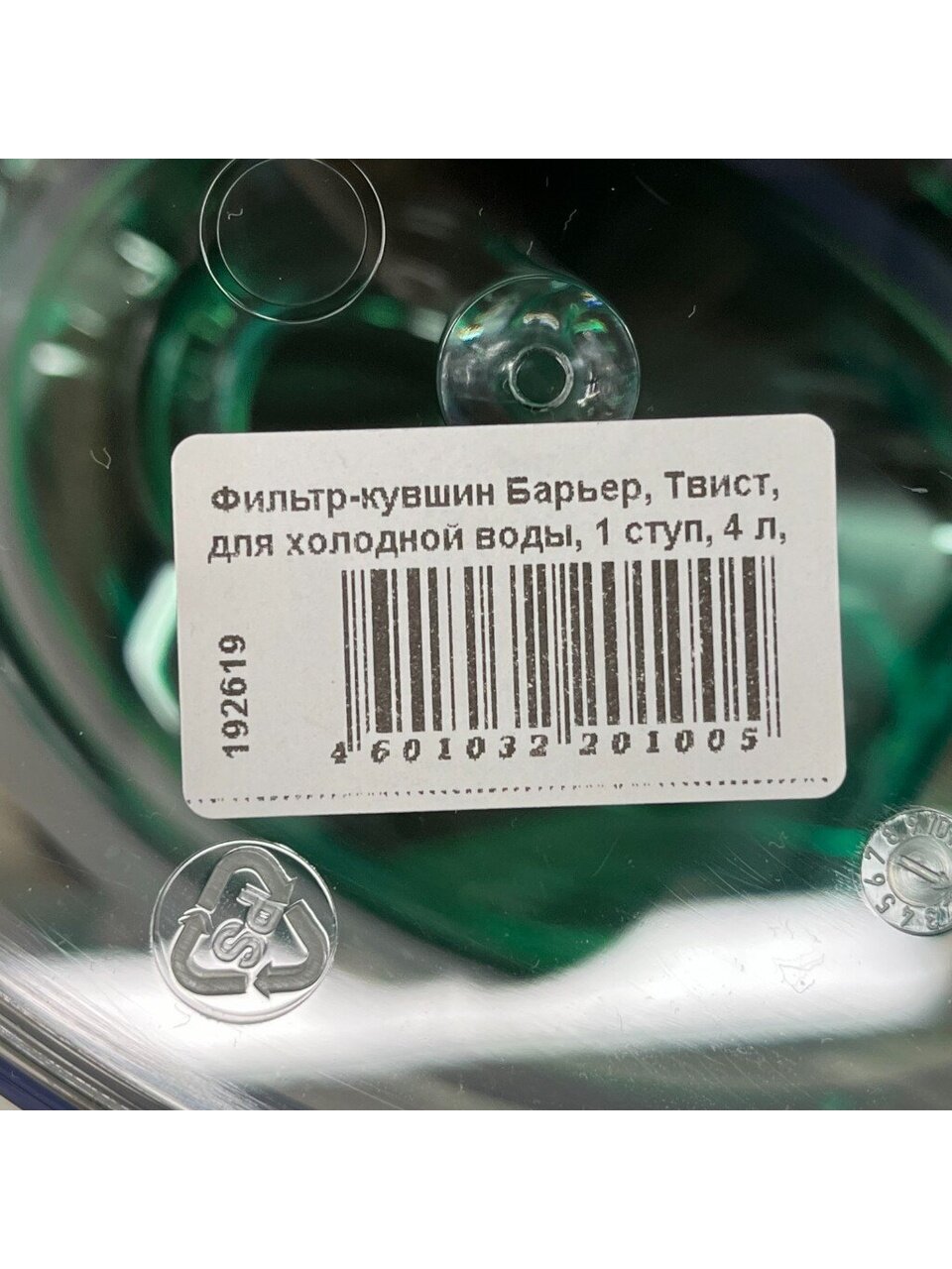 Вы можете приобрести «Фильтр-кувшин Барьер, Твист, для холодной воды, 1 ступ, 4 л, зеленый, В172Р00» и другие товары в нашем интернет-магазине в Курске по низким ценам и с бесплатным самовывозом.