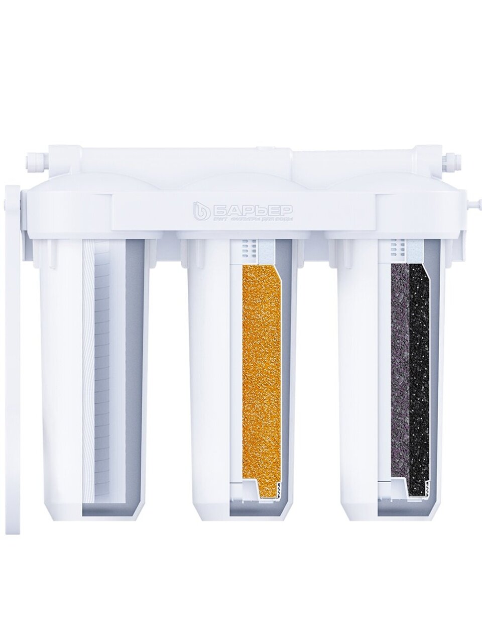 - 1-я ступень - "Барьер Профи Механика 5 мкм". Предварительный фильтр. Очищает от механических загрязнений от 5-ти мкм: песка, взвесей, ржавчины, окалины и многое другое.