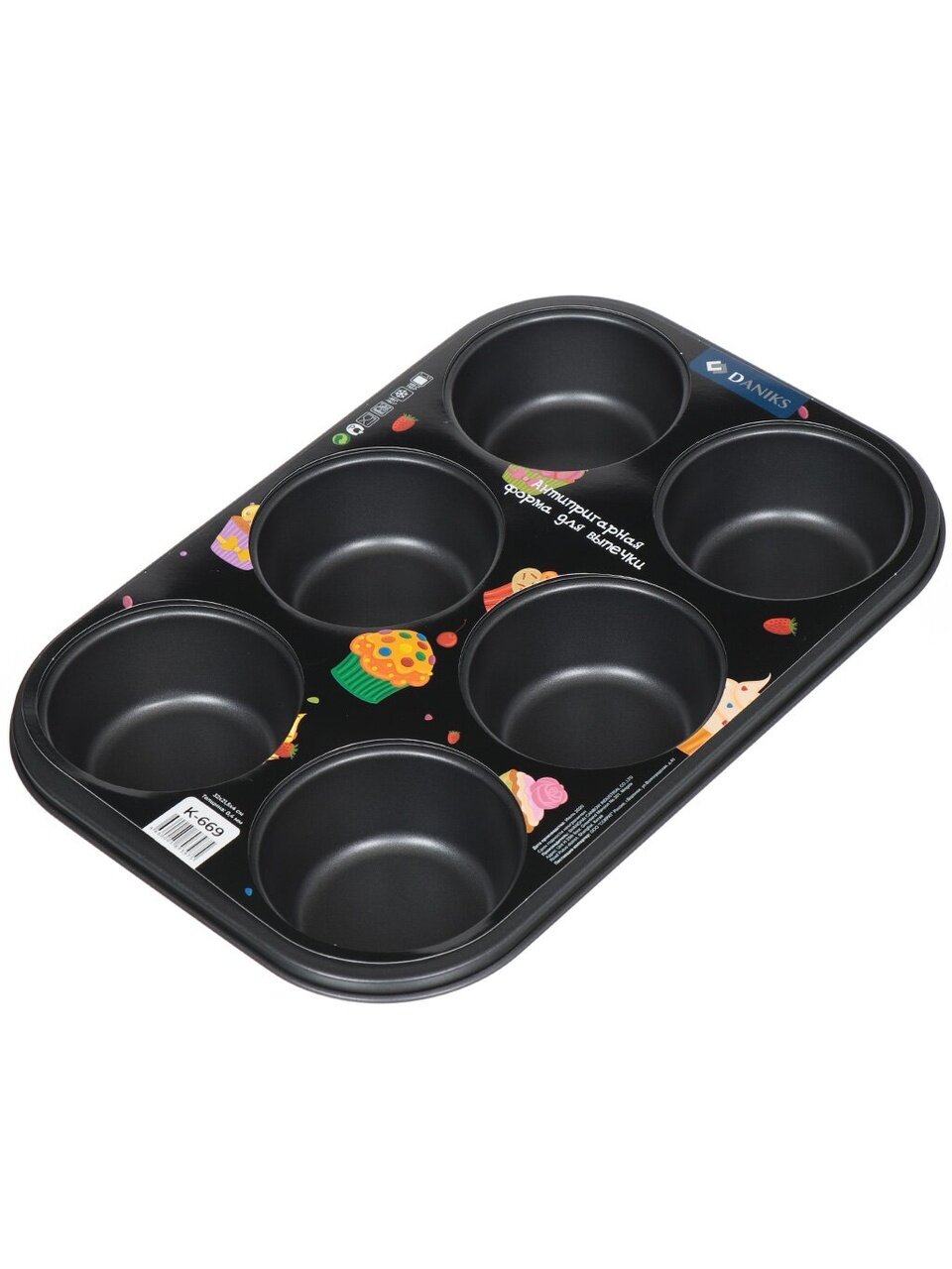 Форма для запекания Daniks K-669: антипригарная сталь, 6 маффинов — идеальный выбор для домашней выпечки без прилипания и сложной очистки.