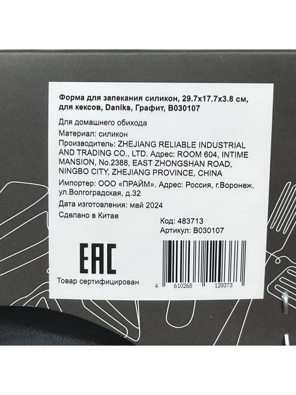 Вы можете приобрести «Форма для запекания силикон, 17.7х29.7х3.8 см, 0.1 л, прямоугольная, для кексов, Daniks, Графит, B030107» и другие товары в нашем интернет-магазине в Ставрополе по низким ценам и с бесплатным самовывозом.