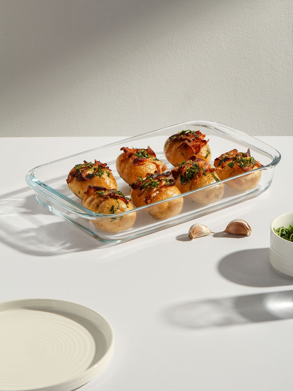 Стеклянная форма для запекания Горница объемом 2,2 литра — это выбор тех, кто ищет безопасную и долговечную посуду для приготовления мяса, курицы, рыбы, овощей или пирогов. Прямоугольная форма с удобными ручками облегчает перенос готовых блюд, а прозрачное жаропрочное стекло позволяет контролировать процесс запекания. Форма не имеет антипригарного покрытия, что делает ее безопасной для здоровья, и легко моется в посудомоечной машине.