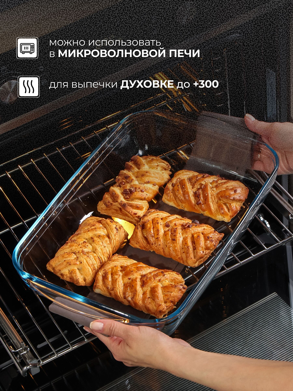 Стеклянная форма не ржавеет, не впитывает запахи, не вступает в реакцию с пищей, легко моется даже после запекания рыбы или курицы. Прозрачность позволяет следить за готовностью блюда.