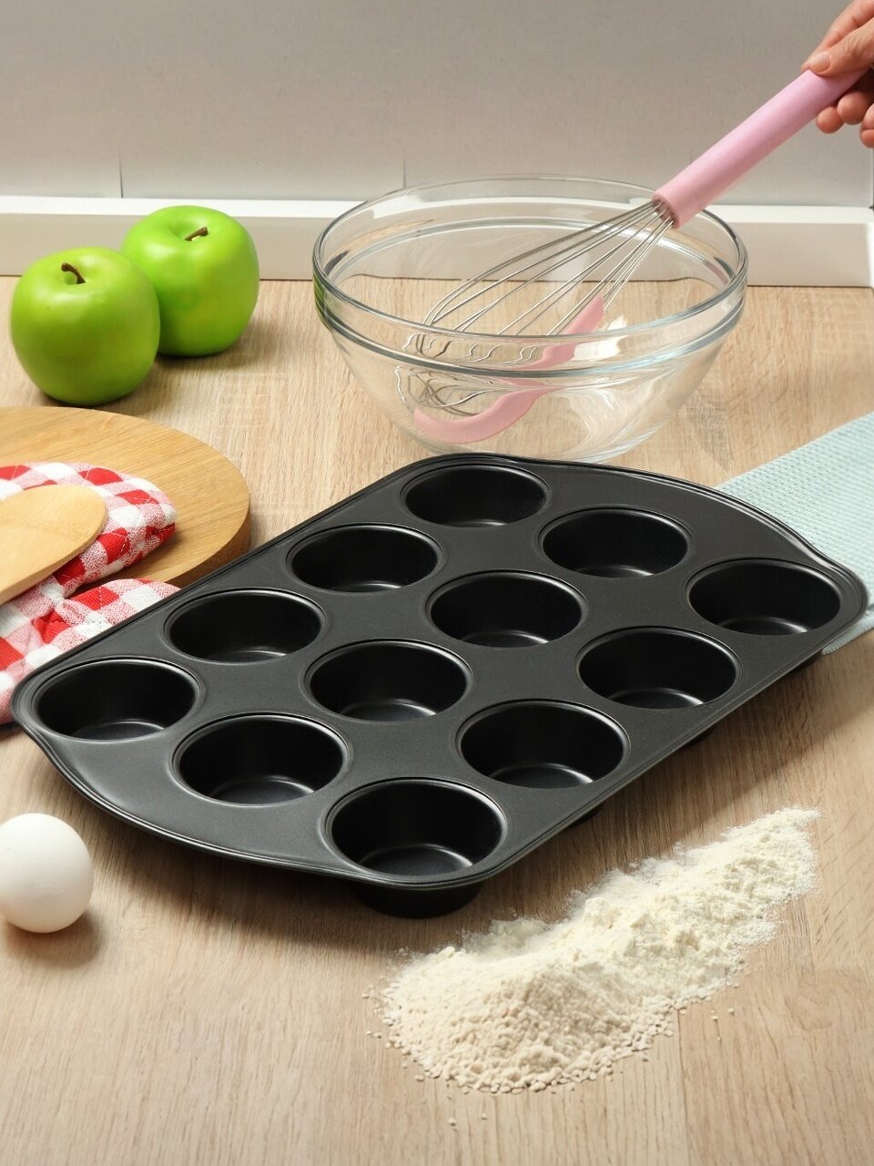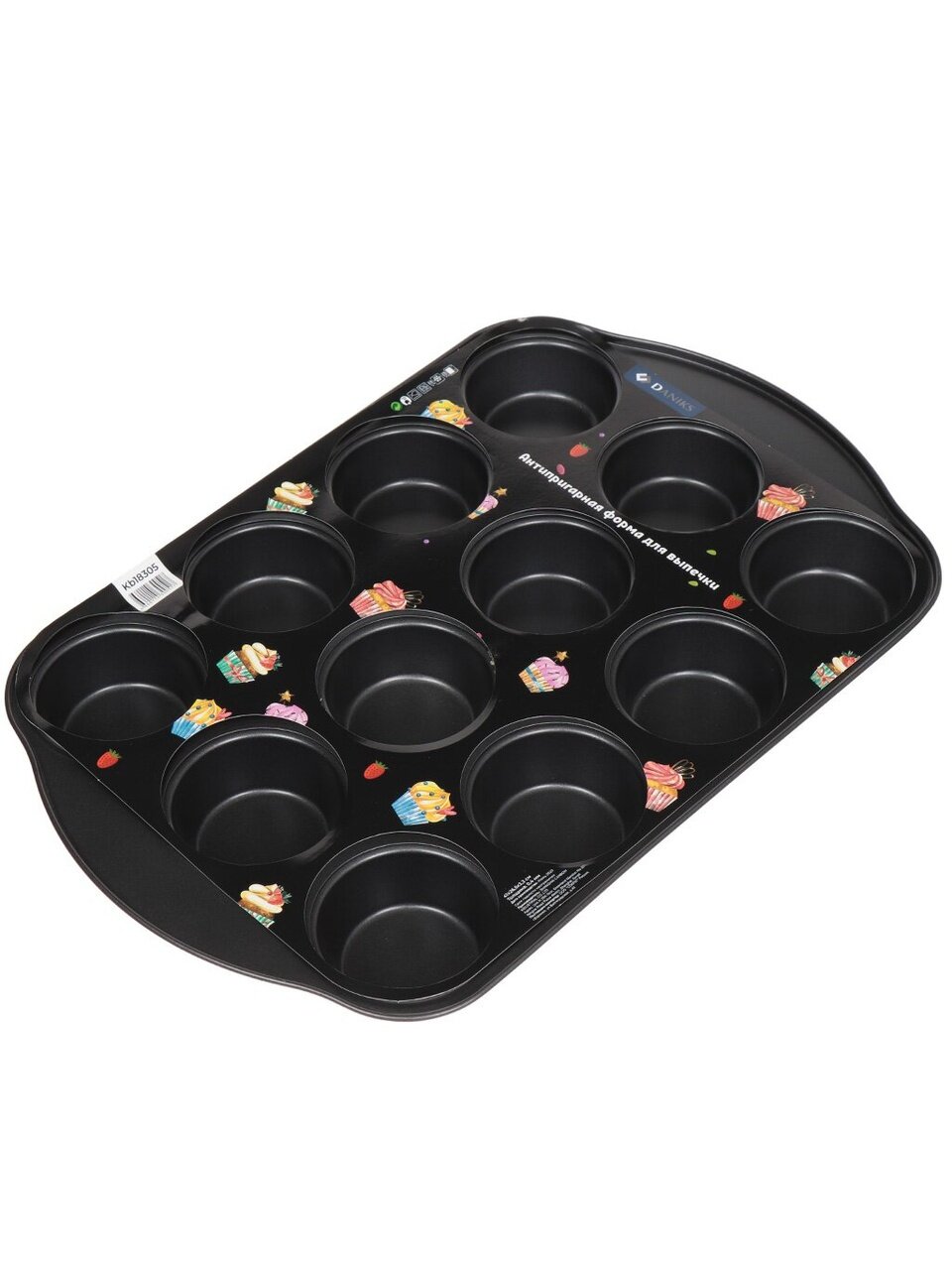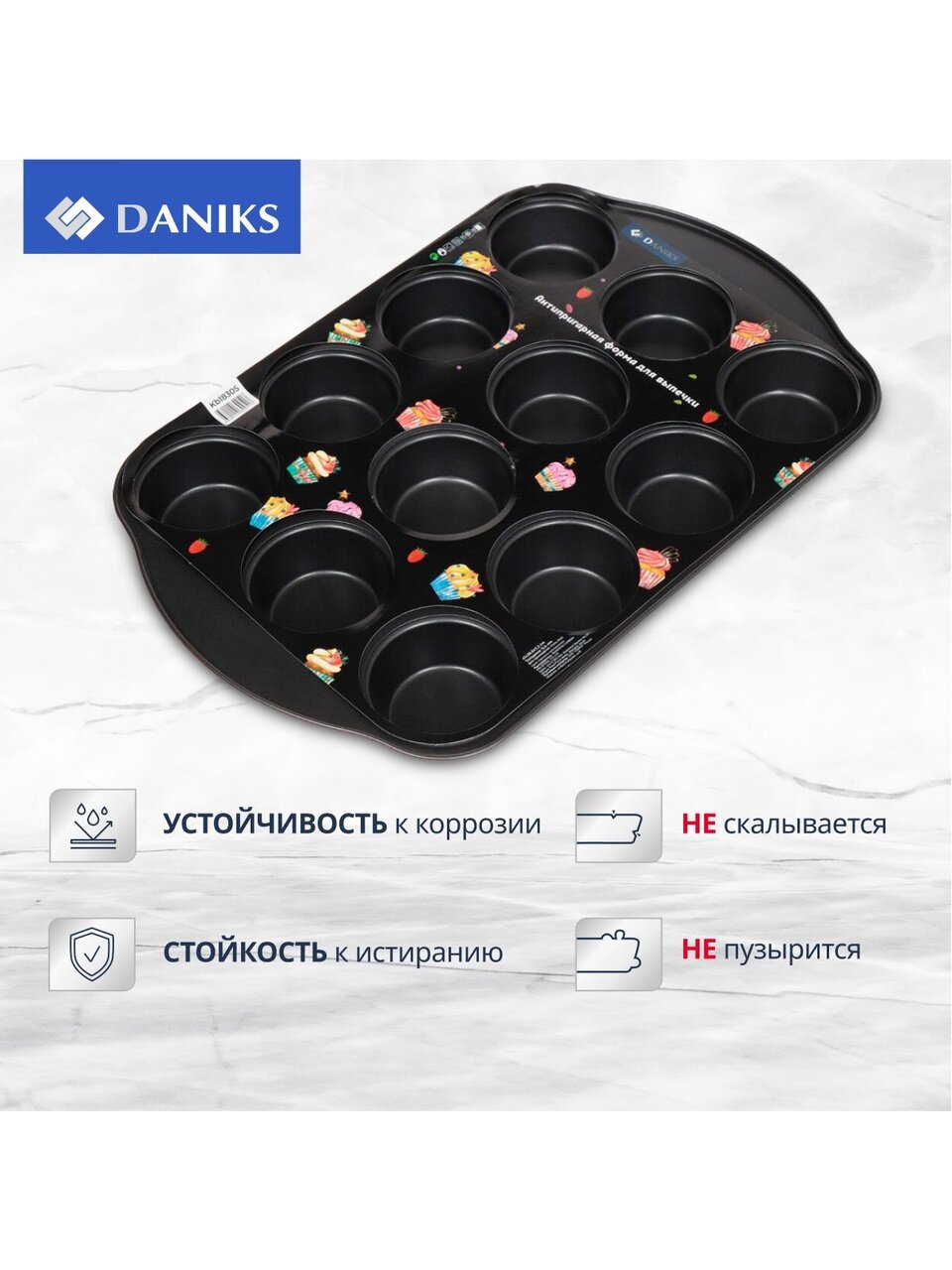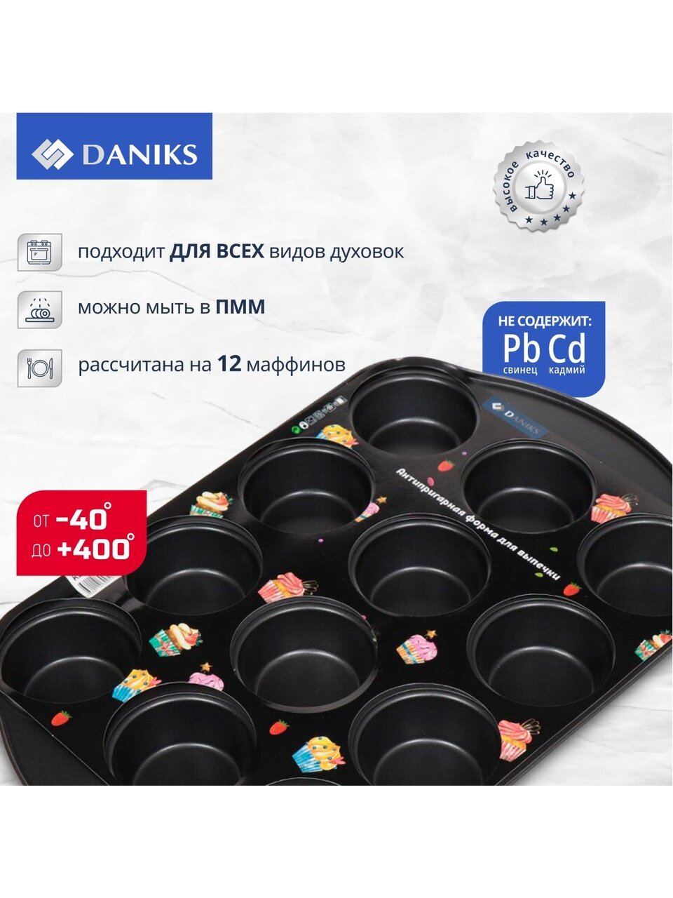 Форма для запекания Daniks KB18305: 12 маффинов за раз, антипригарное покрытие, прочная сталь — идеальный выбор для домашней выпечки и подарка.