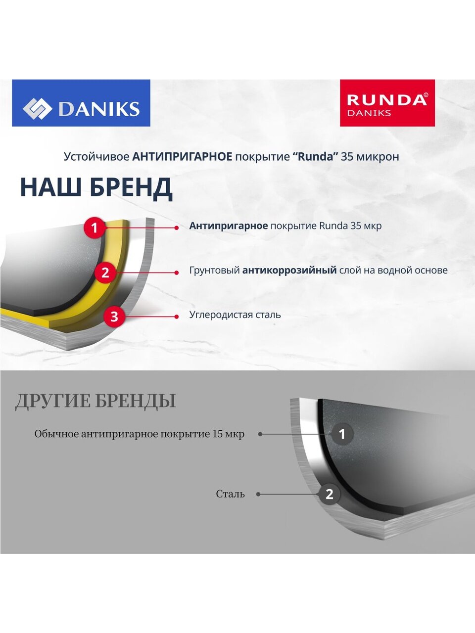 - Усиленная сталь 26,5×41×3,3 см, антипригарное покрытие — легко мыть, служит долго