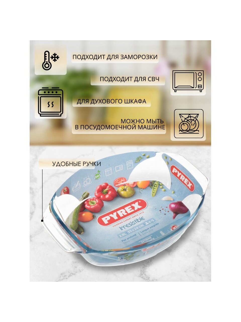 Форма для запекания Pyrex Classic 24х35 см, 2.8 л — жаропрочное стекло для духовки и СВЧ. Легко мыть, оптимальный размер для семьи, подходит для курицы, рыбы, пирогов.
