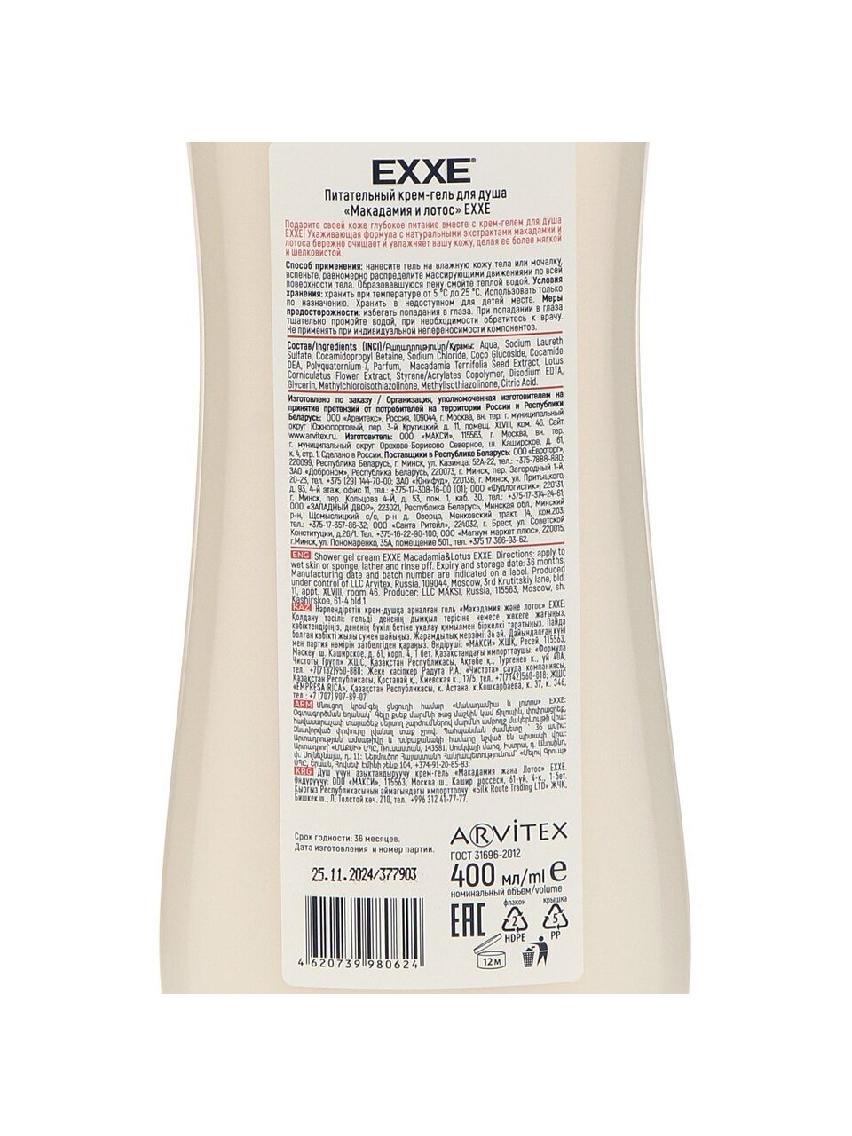 Вы можете приобрести «Гель для душа Exxe, Макадамия и лотос, 400 мл» и другие товары в нашем интернет-магазине в Санкт-Петербургe по низким ценам и с бесплатным самовывозом.