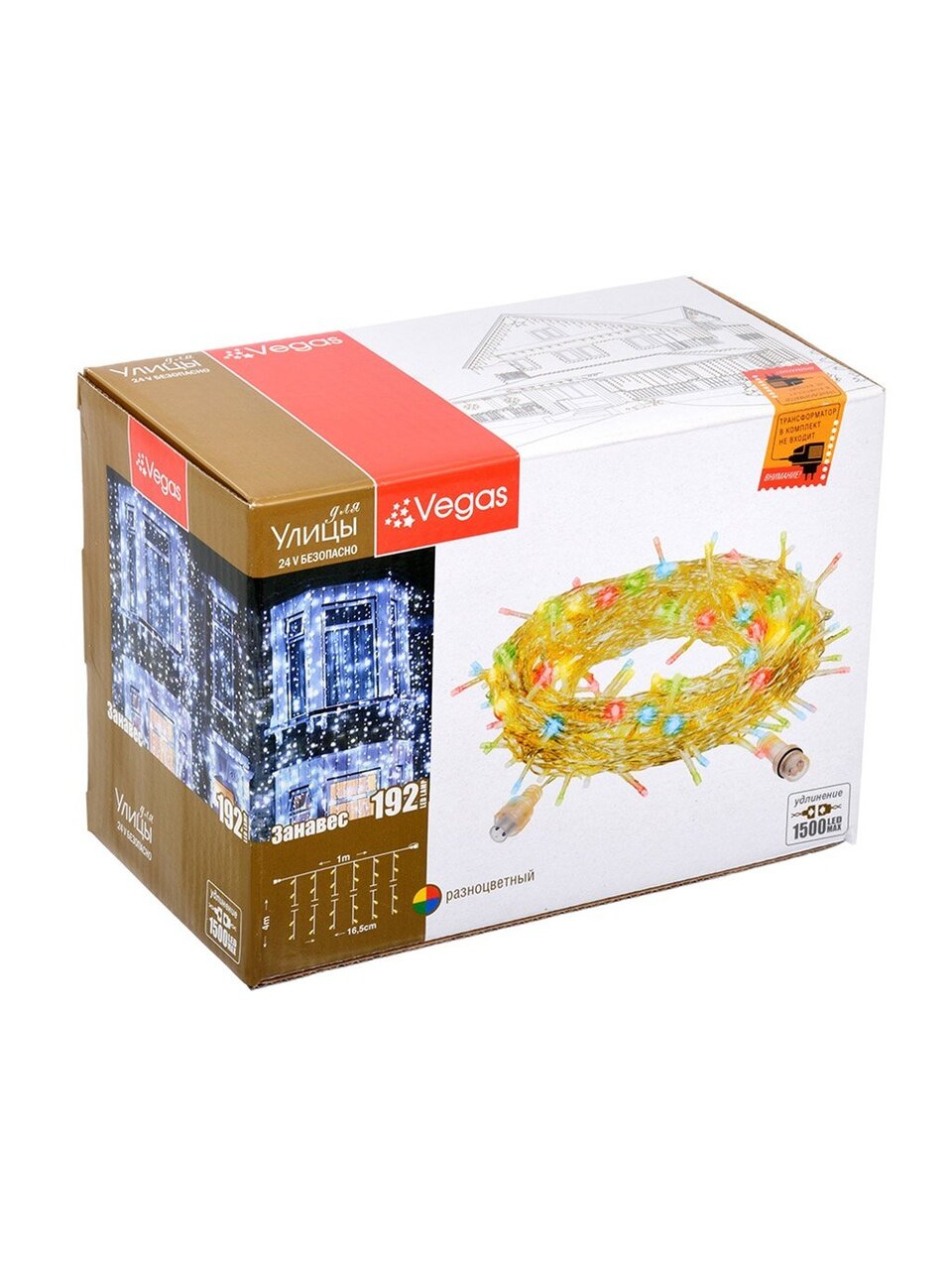Вы можете приобрести «Гирлянда 192 лампы, 4х1 м, 1 режим, Занавес, Vegas, свет мультиколор, прозрачная, на улице/в помещении, сетевая, LED, 6 нитей, 55095» и другие товары в нашем интернет-магазине в Брянске по низким ценам и с бесплатным самовывозом.