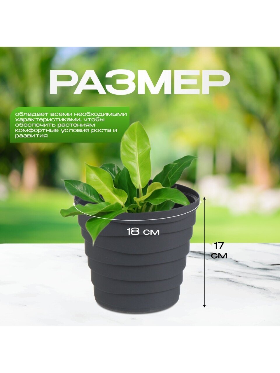 Особенность серии заключается в красоте природных линий и фактур. Это необычное сочетание выделит кашпо в любом интерьере и придаст свою атмосферу как дому, так и офису. Кашпо оснащено дренажным донышком, которое позволит сохранить корневую систему растения от избыточного полива, защищая его и создавая воздушный слой для лучшей циркуляции воздуха в почве.