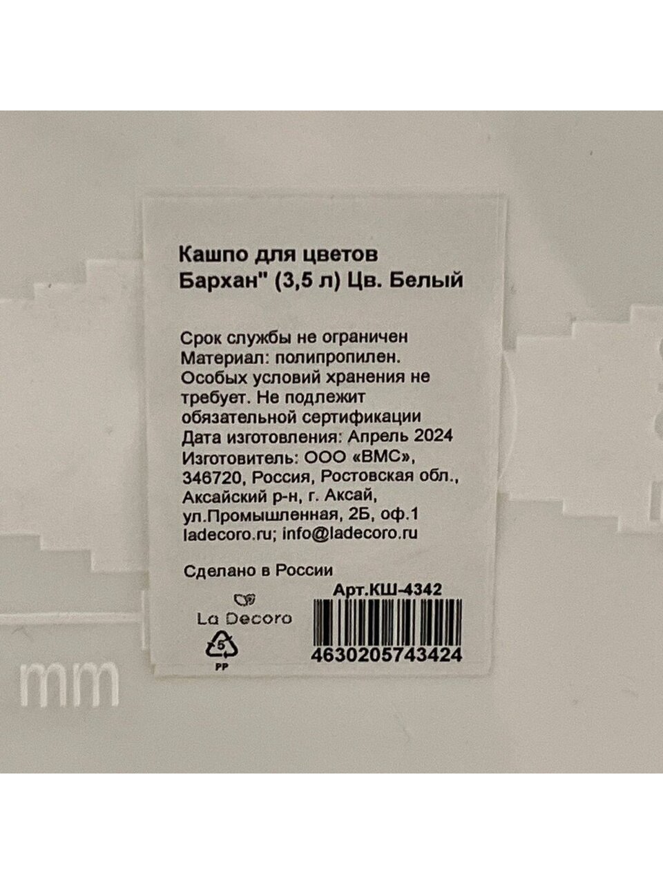 Вы можете приобрести «Кашпо пластик, 3.5 л, универсальное, белое, La Decoro, Бархан, КШ-4342» и другие товары в нашем интернет-магазине в Нижнем Новгороде по низким ценам и с бесплатным самовывозом.