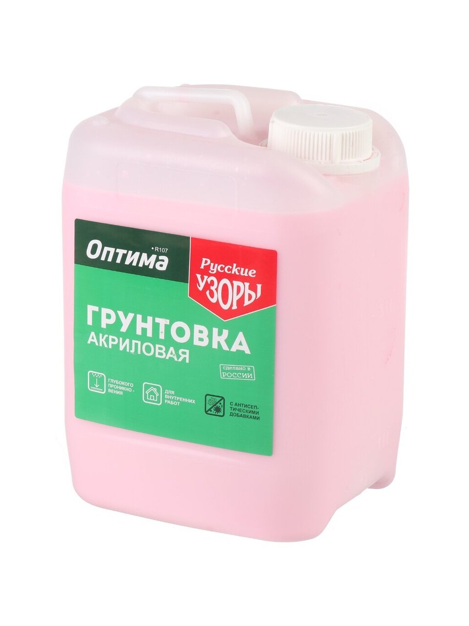 Вы можете приобрести «Грунтовка водно-дисперсионная, акриловая, Русские узоры, Оптима R107, глубокого проникновения, для внутренних работ, 5 л» и другие товары в нашем интернет-магазине в Воронеже по низким ценам и с бесплатным самовывозом.