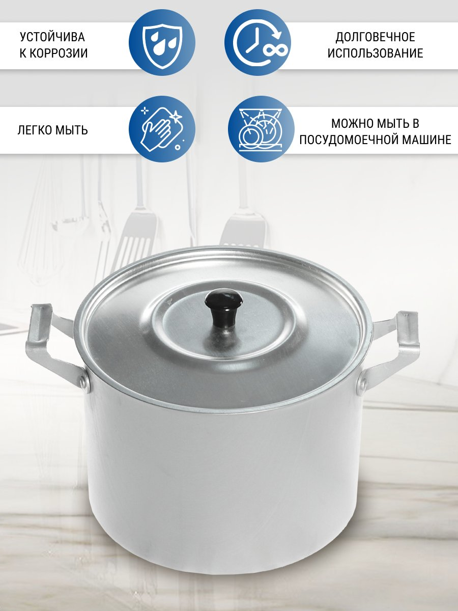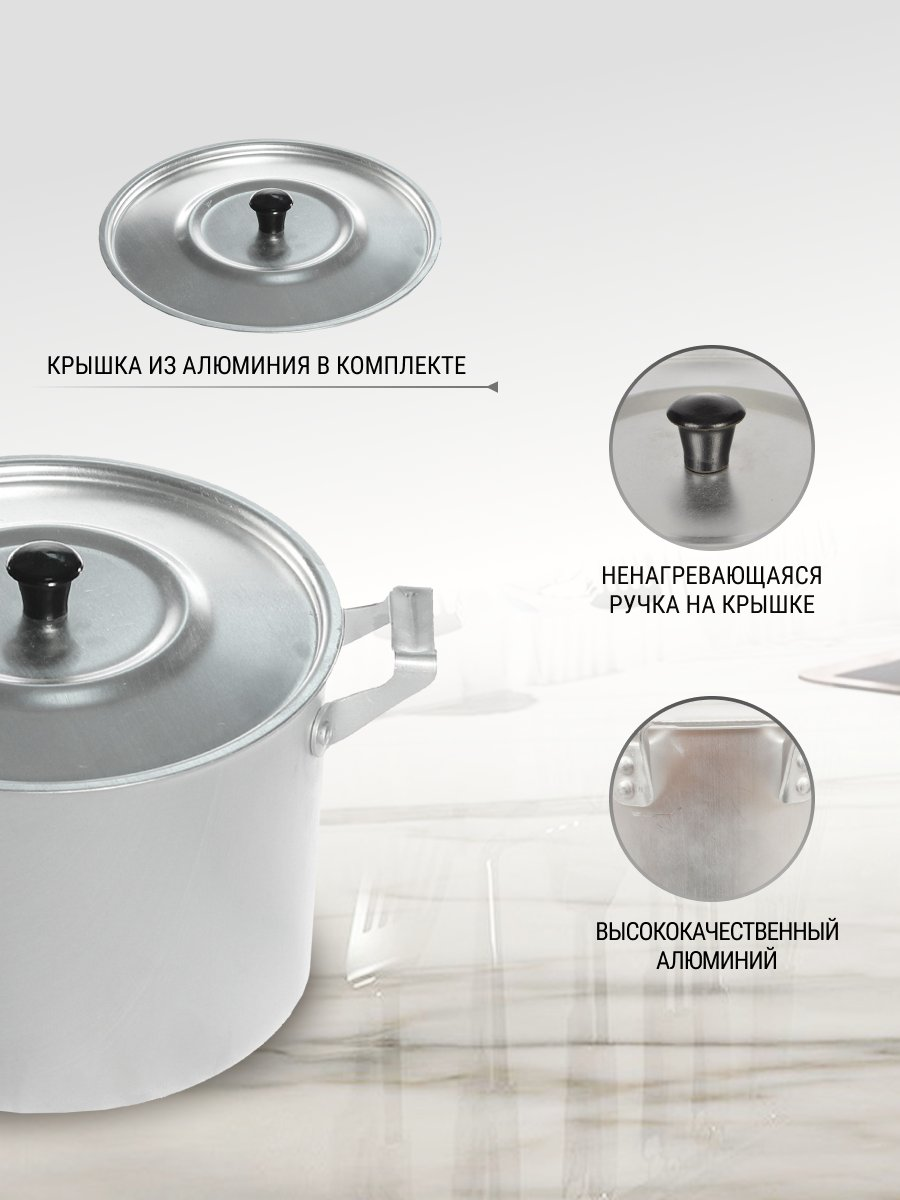 Кастрюля Scovo 4.5 л из алюминия — легкая и вместительная посуда для дома и дачи. Готовьте супы, макароны, пельмени без пригорания и лишних хлопот.