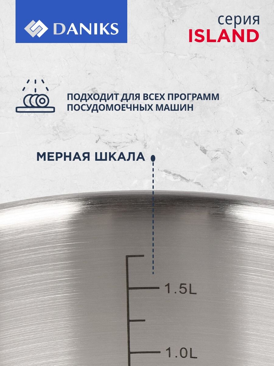 Кастрюля Daniks Айленд 2.2 л из нержавеющей стали с капсульным дном и стеклянной крышкой — идеальное решение для индукционных плит и ежедневной готовки без хлопот.